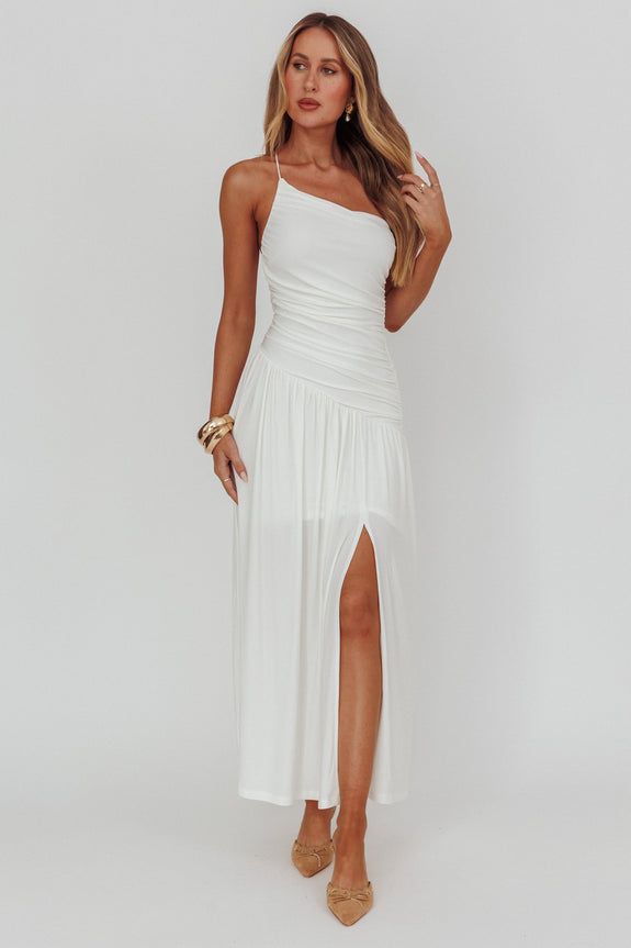You'll feel like packing your bags and escaping to Santorini in our pretty Destination maxi dress. We are loving its chic, one-shoulder style and gorgeous gathering detail. Perfect for warm, Summer nights at your fave beachside bar. Team it with tan mules and a tote for a look we are loving.