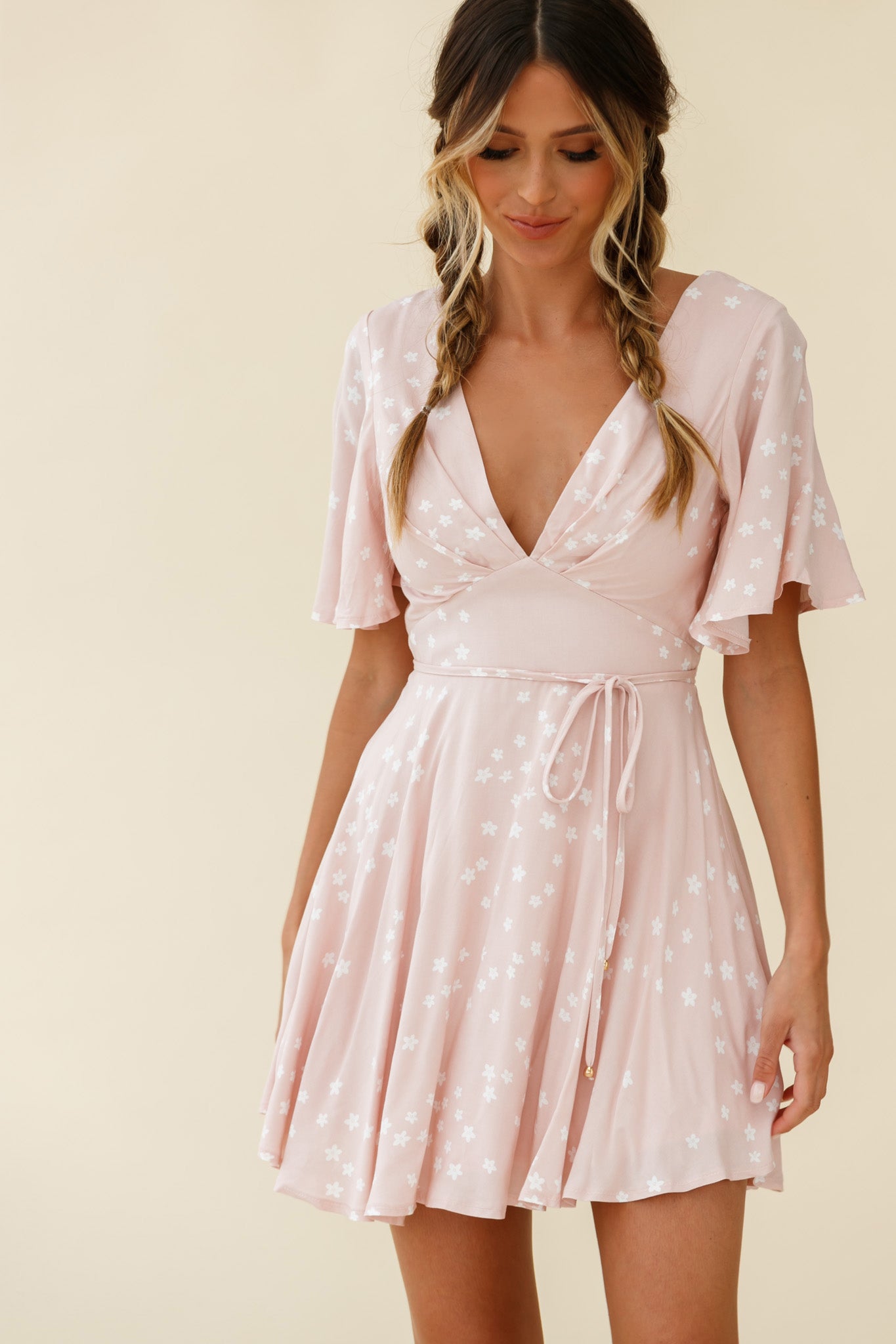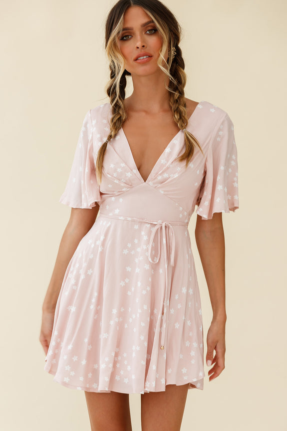 A Summer romance is on the cards for you in our super sweet Dina dress. It features a V neckline, flirty angel sleeves, a string tie around the waist and a floaty skirt, perfect for twirling on cloud 9. We are obsessed with its open back with string-tie fastening. Perfect for a first date with your Summer crush teamed with canvas wedges and a basket bag.