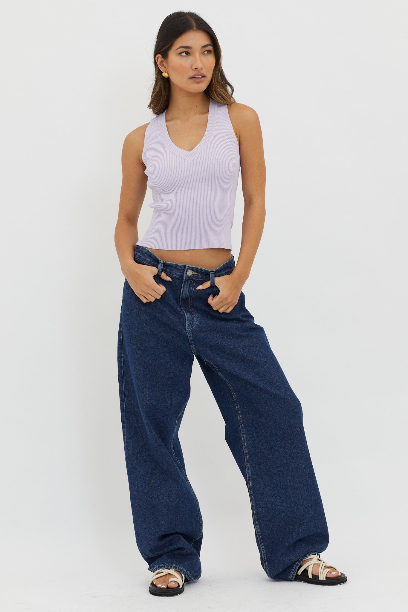D'Lila V-Neck Ribbed Knit Top Lilac
