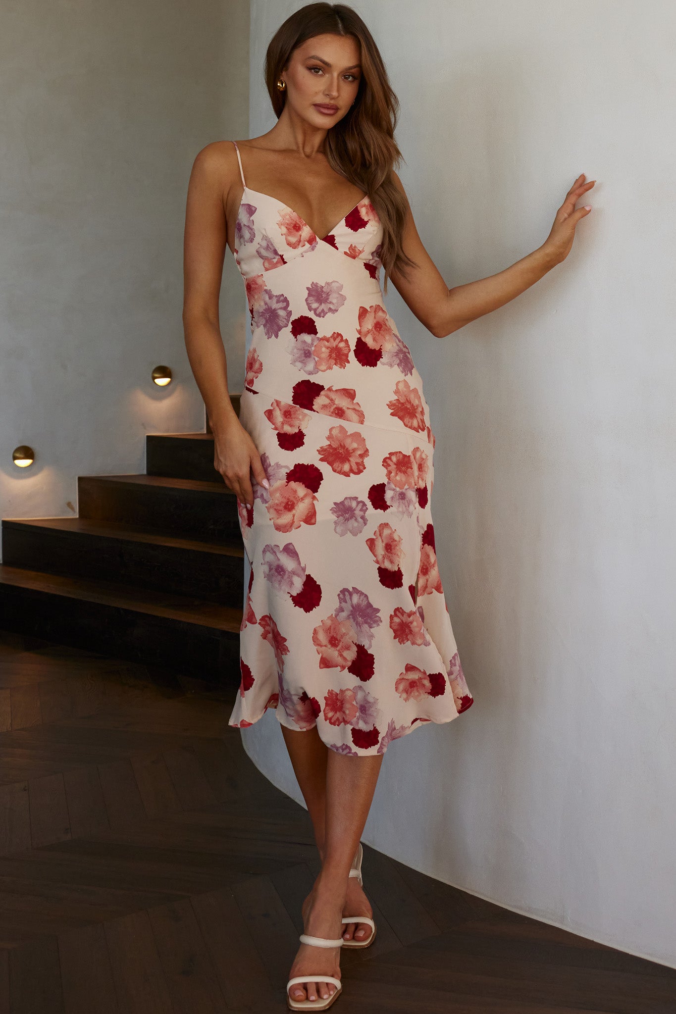 Downtown Cami Strap Front Split Midi Dress Flower Rose
