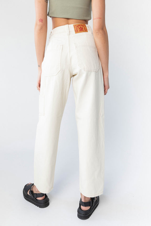 Bella is our chill girl. Designed to be snug at the waist/hips with a roomy fit on the legs. Slightly tapering down at the hem, the Bella Worker in Loom State can we worn long, rolled, or cut for a raw hem finish. Choose your true size for a relaxed fit, half size down (slim fit) or up (baggy fit).