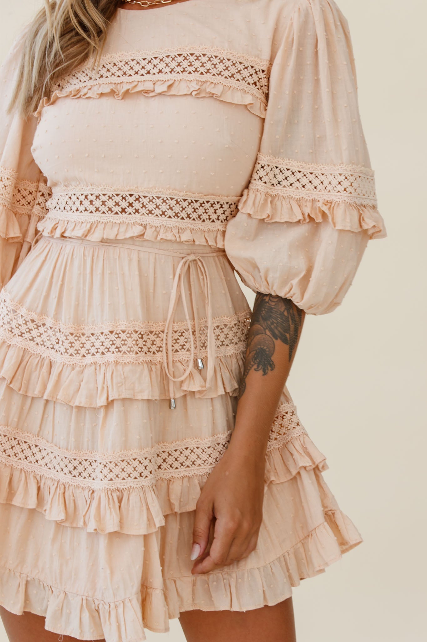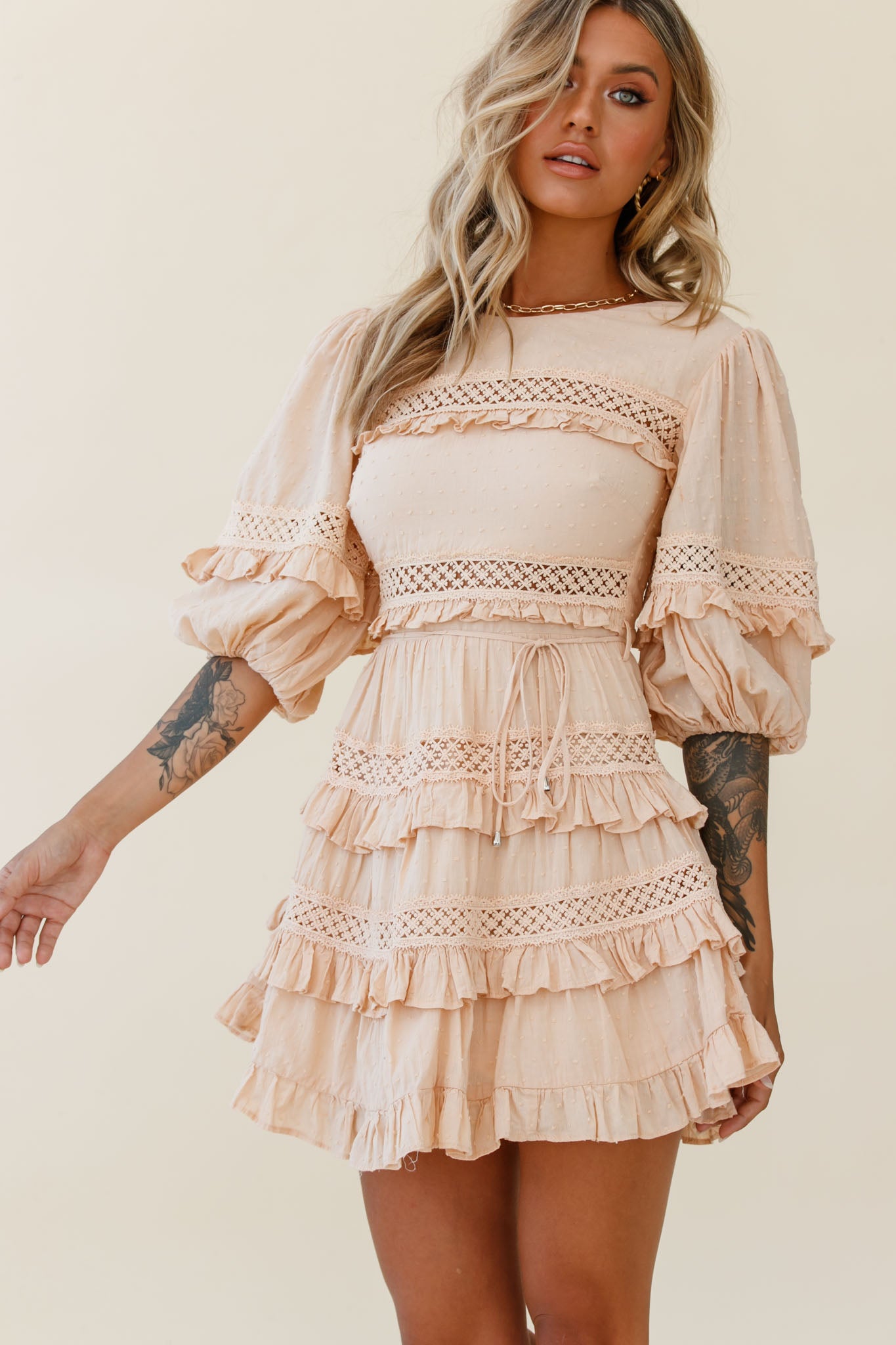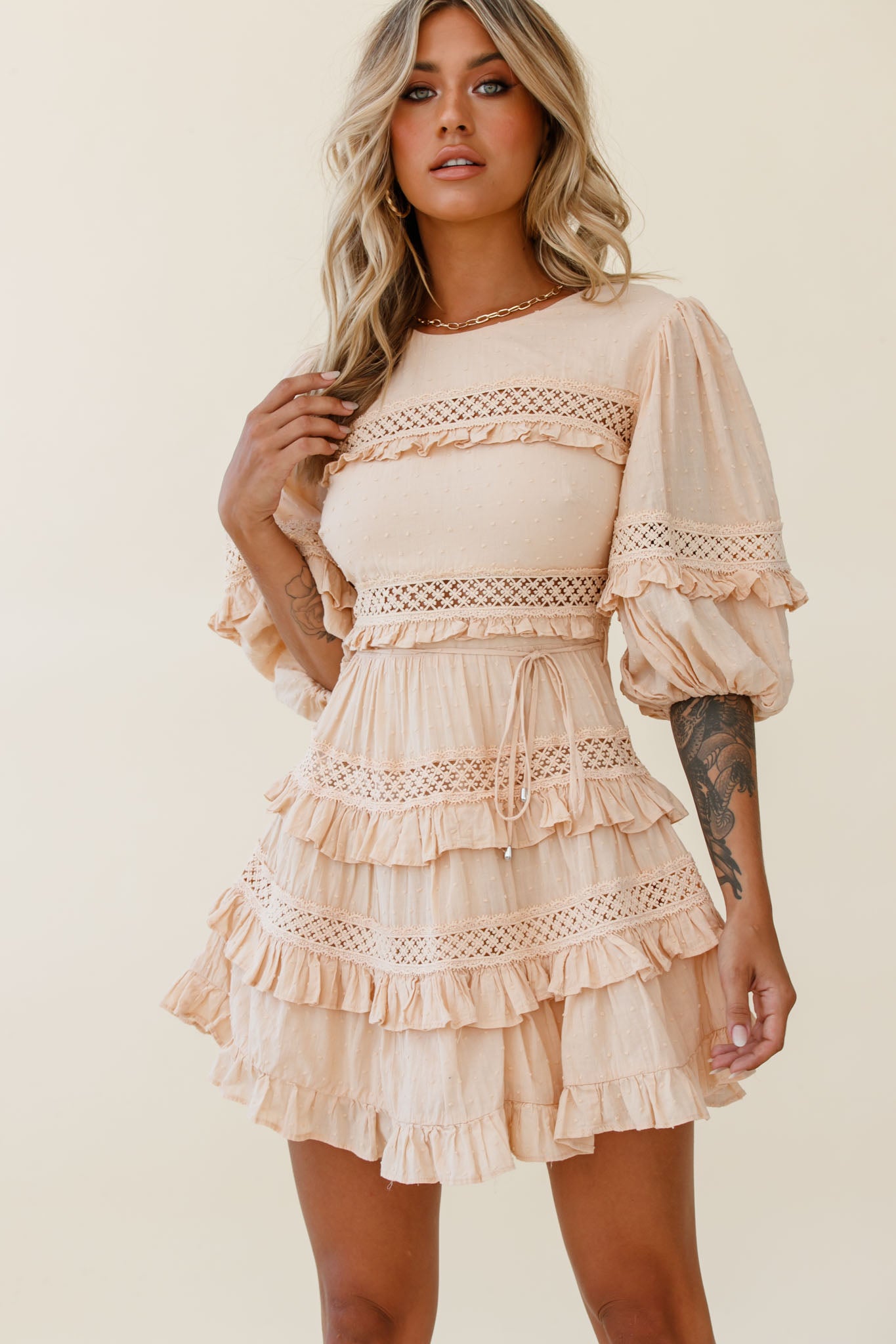 You'll be turning heads in our gorgeous Dream About It dress. We are loving the adorable layered frill and lace trim accents! Perfect for a lunch date with your besties teamed with your fave mules and a head scarf.