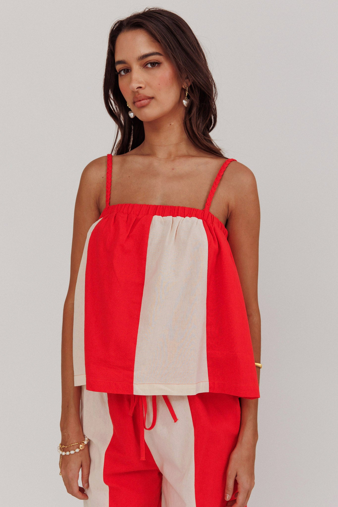 Dream Girl Braided Strap Contrast Top Tomato Red