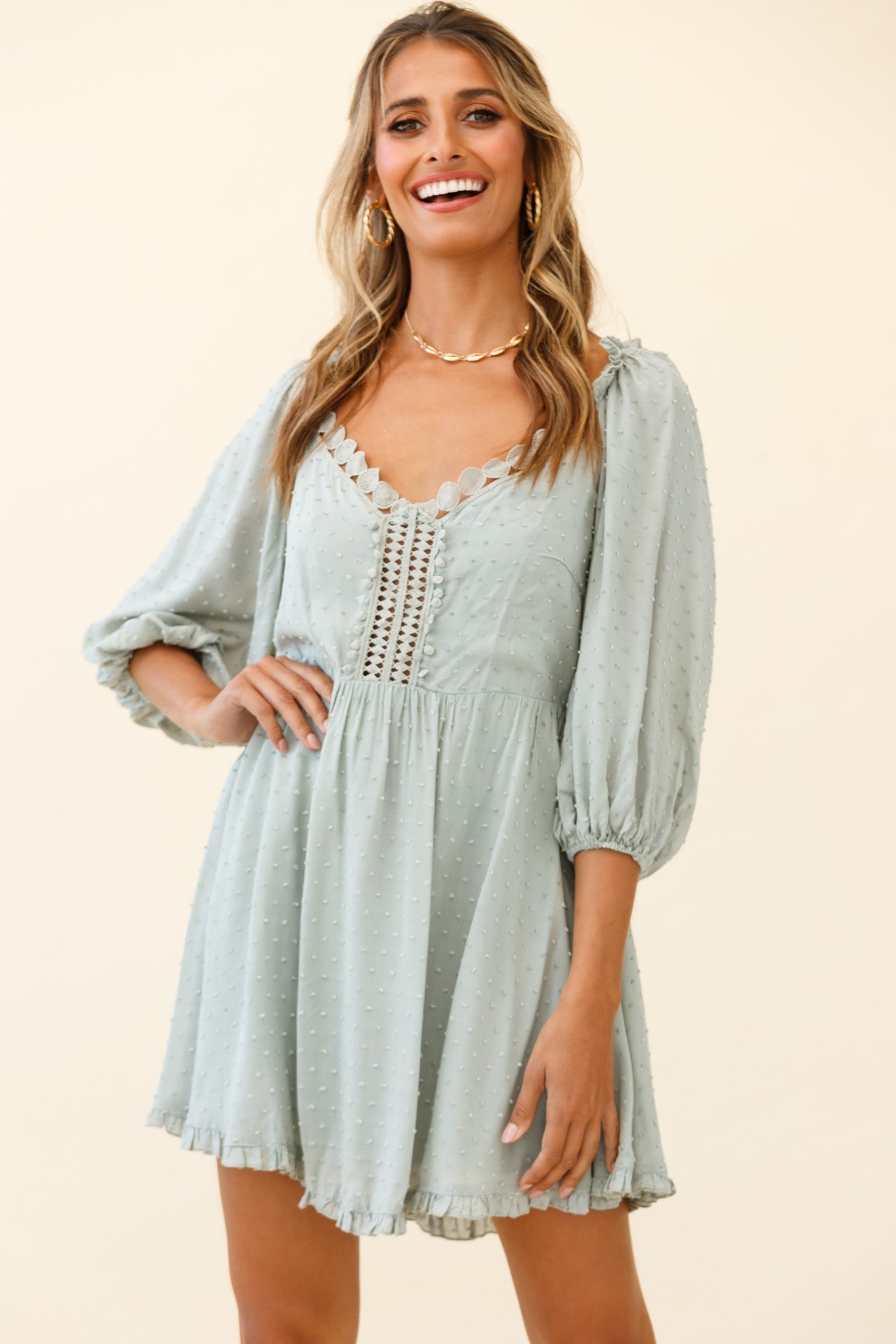 You'll look like an angel in our adorable Dream Lover dress. Featuring the sweetest puff sleeves and pretty crochet trim details. Perfect for a champagne brunch with your besties. Team it with neutral tie-up heels and a tote for a look we are loving.