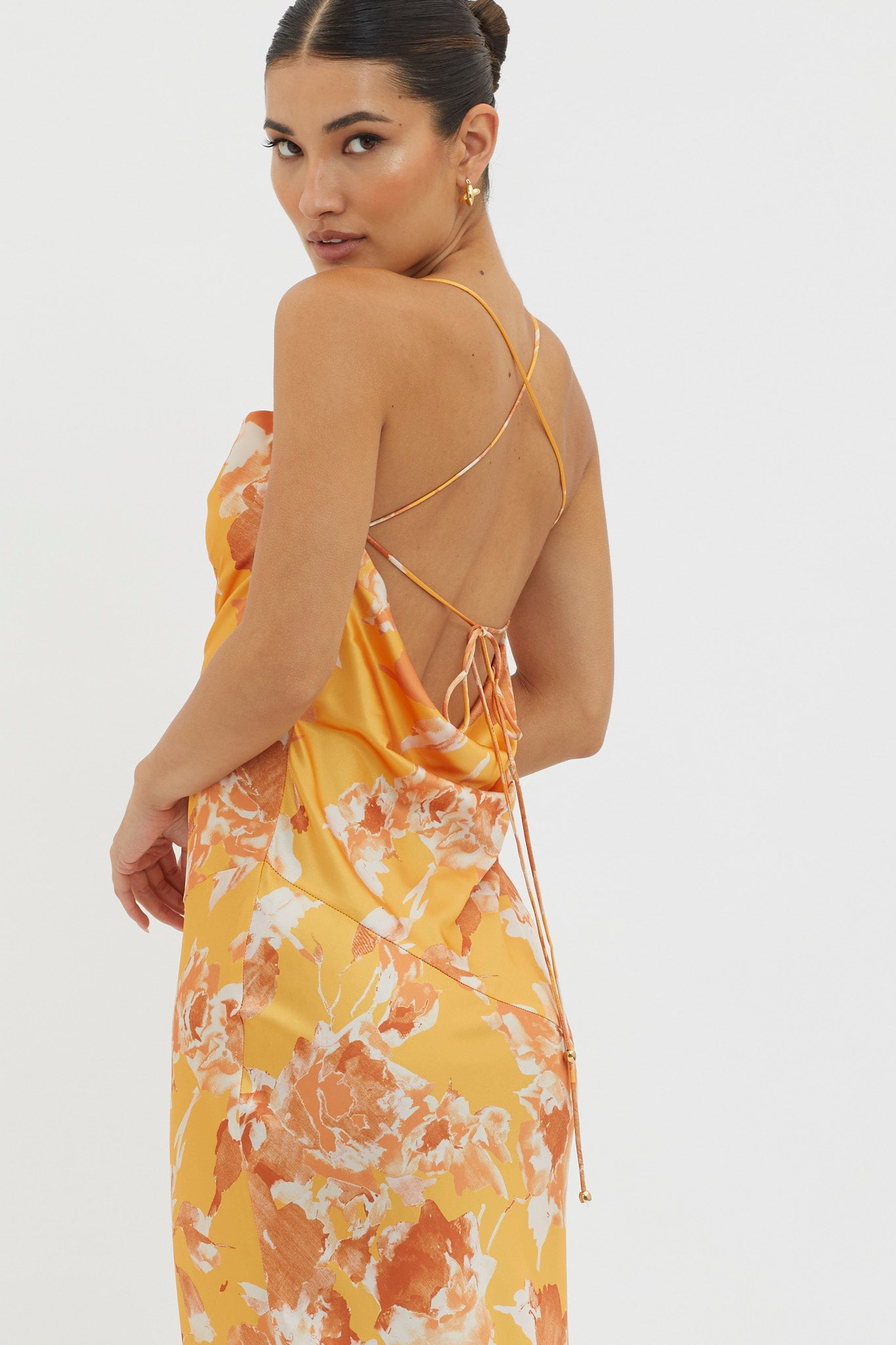 Dream Walk Cowl Back Tied Dress Print Orange