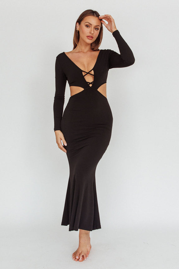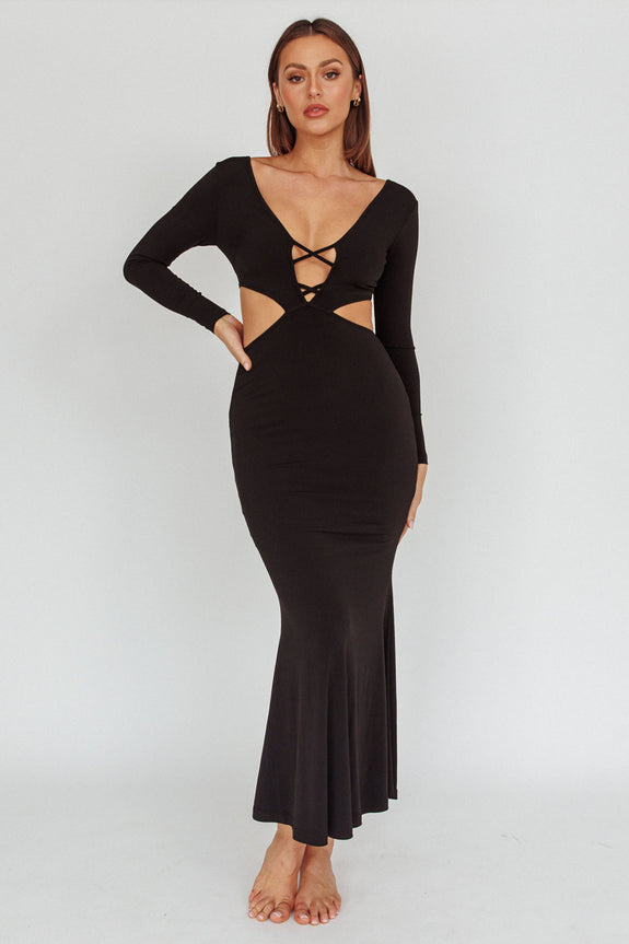You'll go straight to the best-dressed list in our hot Dress Codes maxi dress. Featuring long sleeves and cut-out detail in the bodice. It's perfect for dinner and cocktails with your girls teamed with black heels and a purse for a look we are crushing on.