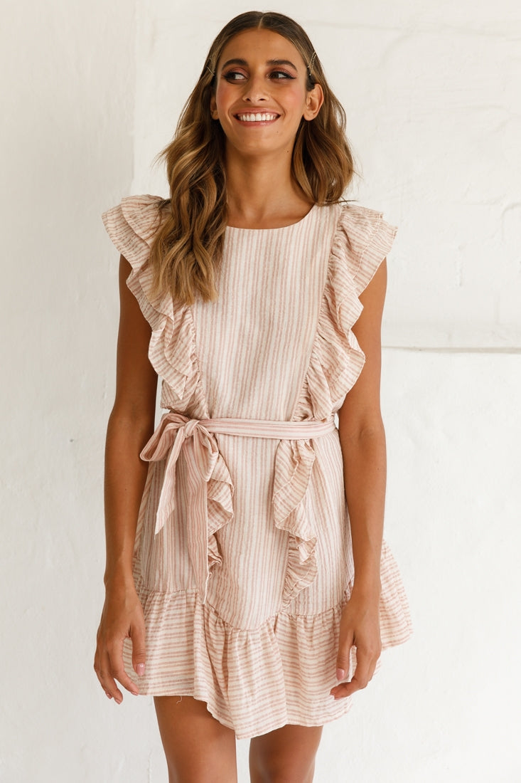 We are loving this playful shift dress. Perfect for warm Summer days at the beach or dressed up for a lunch date. Featuring a chic, sleeveless swing style, ruffle details, a fluted hem and separate fabric belt tie, it'll have everyone asking where you got your dress, girl?! Team it with espadrille wedges for a breezy Summer look we can't get enough of!