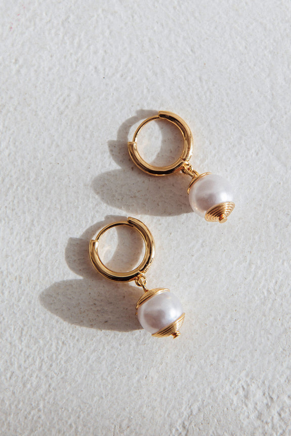Ebony Drop Pearl Earrings Gold