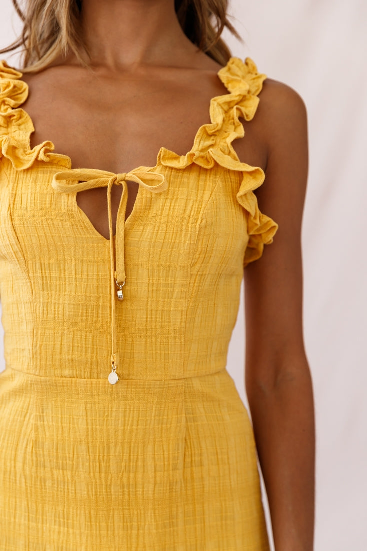Our Elah dress is perfect for those sunny days out with your besties. Featuring a soft cotton fabric with frill straps, ruffle hemline and tie-together bust. Style this dress with simple accessories and complete the look with with some cute wedges for an effortless look we are loving.