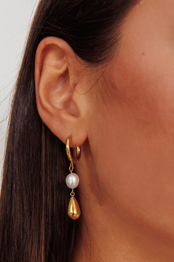 Elodie Teardrop Pearl Earrings Gold