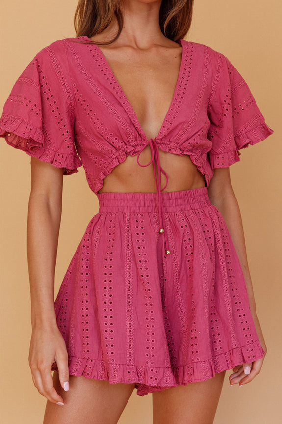 You'll be making all the heads turn in our Endless Weekend romper. We are majorly crushing on that tied bust and pretty eyelet embroidery fabric. Perfect for a dinner date with your girl squad followed by cocktails and dancing the night away. Team it with tan, strappy heels and gold hoops for an on-trend look we can't get enough of.