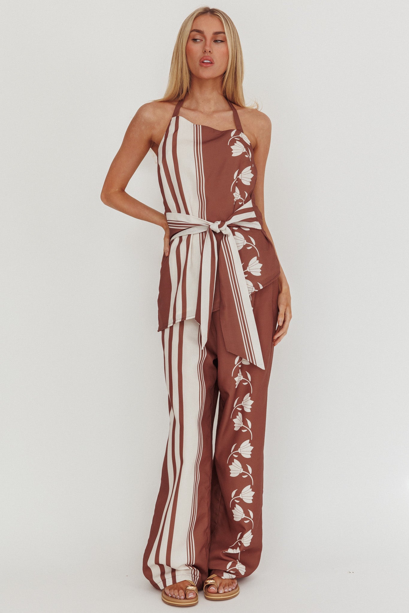 The weekend is just around the corner and our Eniola top is perfect for lazy Saturdays and Sunday brunches. It features a tie in the waist and looks amazing teamed with its matching pants and sandals for a chic look.