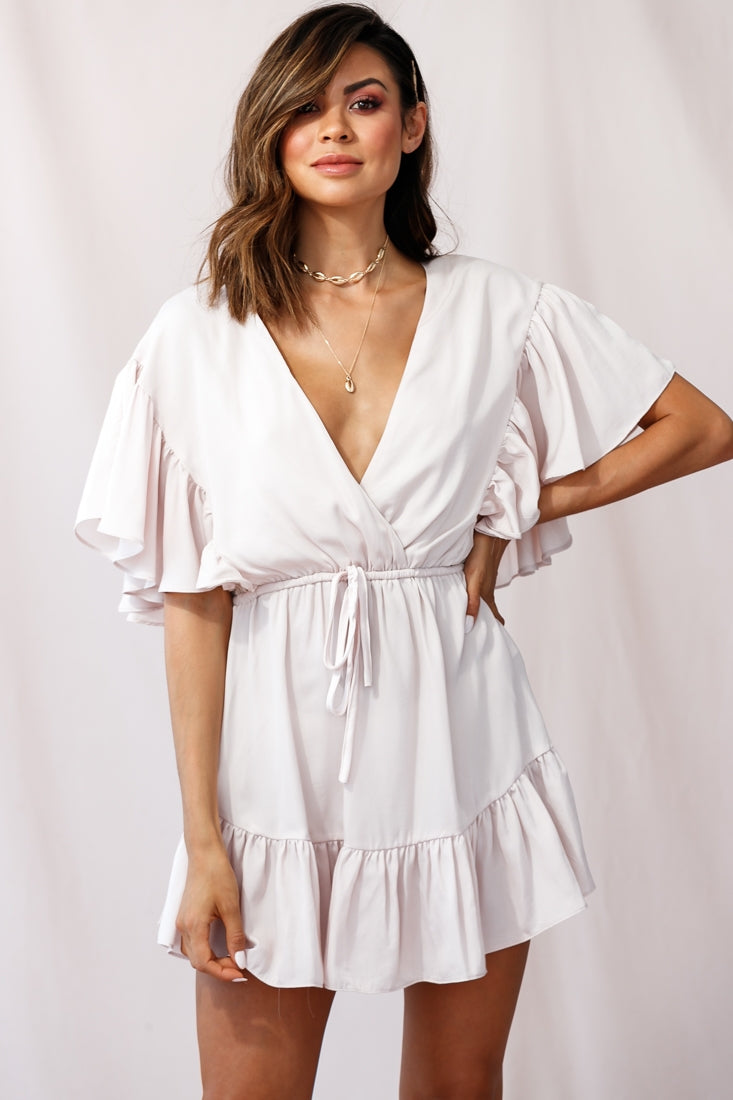 Dance the night away in our super cute Esme dress. Featuring a deep V-neckline, drawstring waist, keyhole back and fluted hem. Oh and we are loving the fluttery angel sleeves! Team it with gold hoop earrings and strappy heels as you sashay your way across the dance floor, in full view of Mr. Tall, Dark and Handsome.