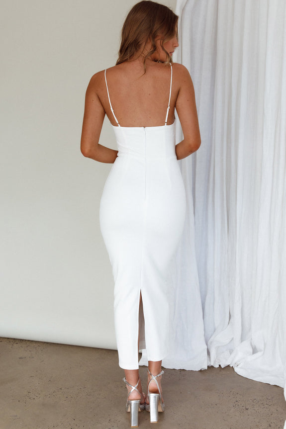 Make an entrance in our super hot Esperance midi dress. Featuring a gorgeous diamante trim and chic bodycon silhouette. Perfect for a fun girls' night out teamed with platform heels and a diamante bag.