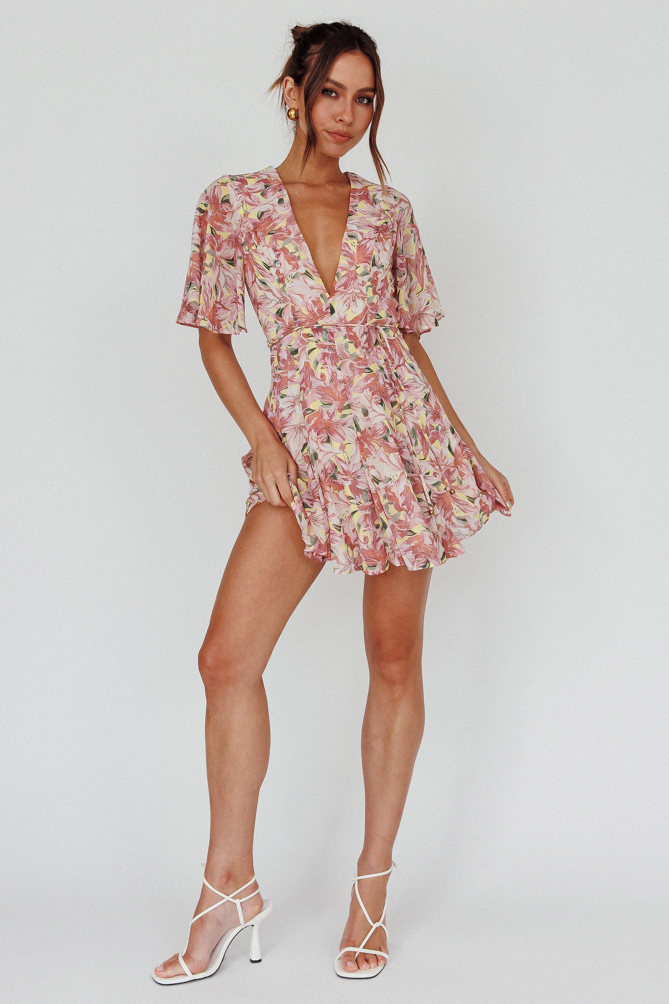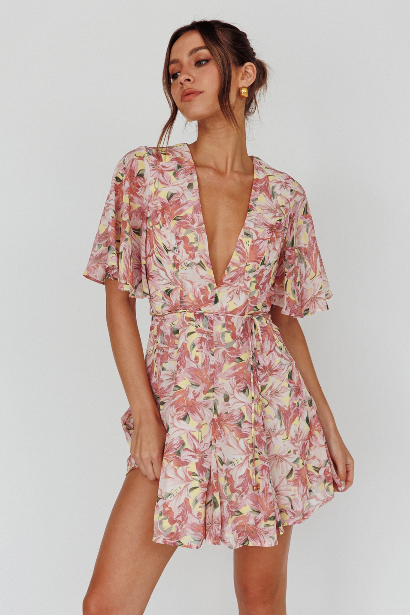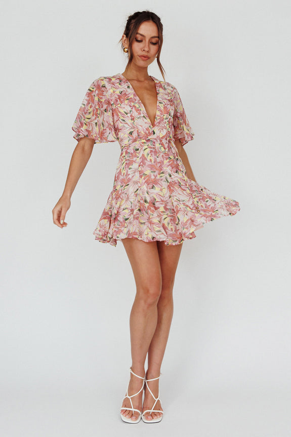 Estelle Angel Sleeve Dress Lily Print Yellow