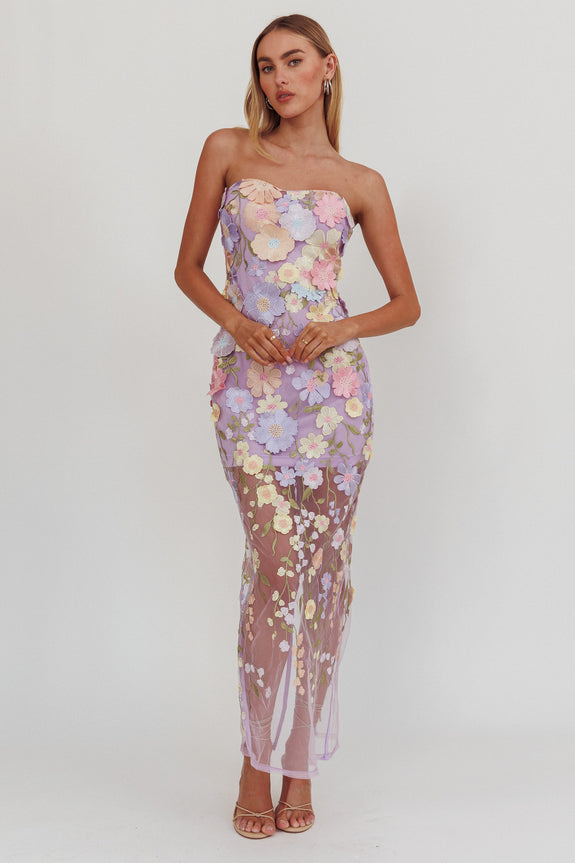 Euphoria Dream Embellished Mesh Maxi Dress Lilac