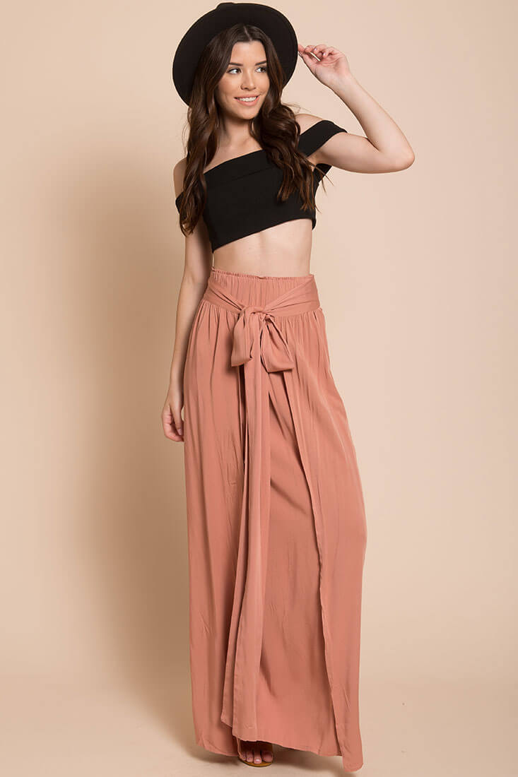 Show some leg in the Evalyn High Slit Skirt. This piece features a wrap tie around the waist to add to this timeless look. Pair with a cute graphic band tee and dark skater shoes to balance this pretty skirt with some edge.