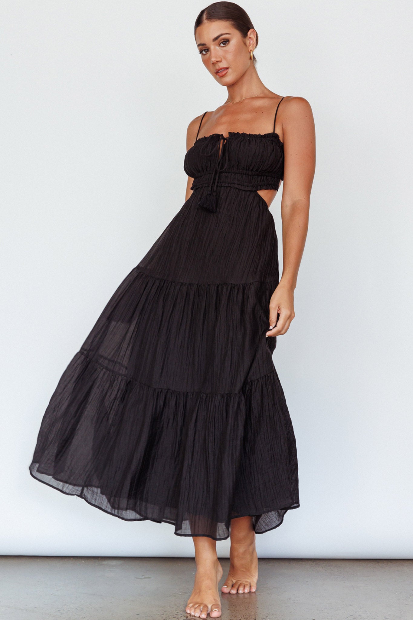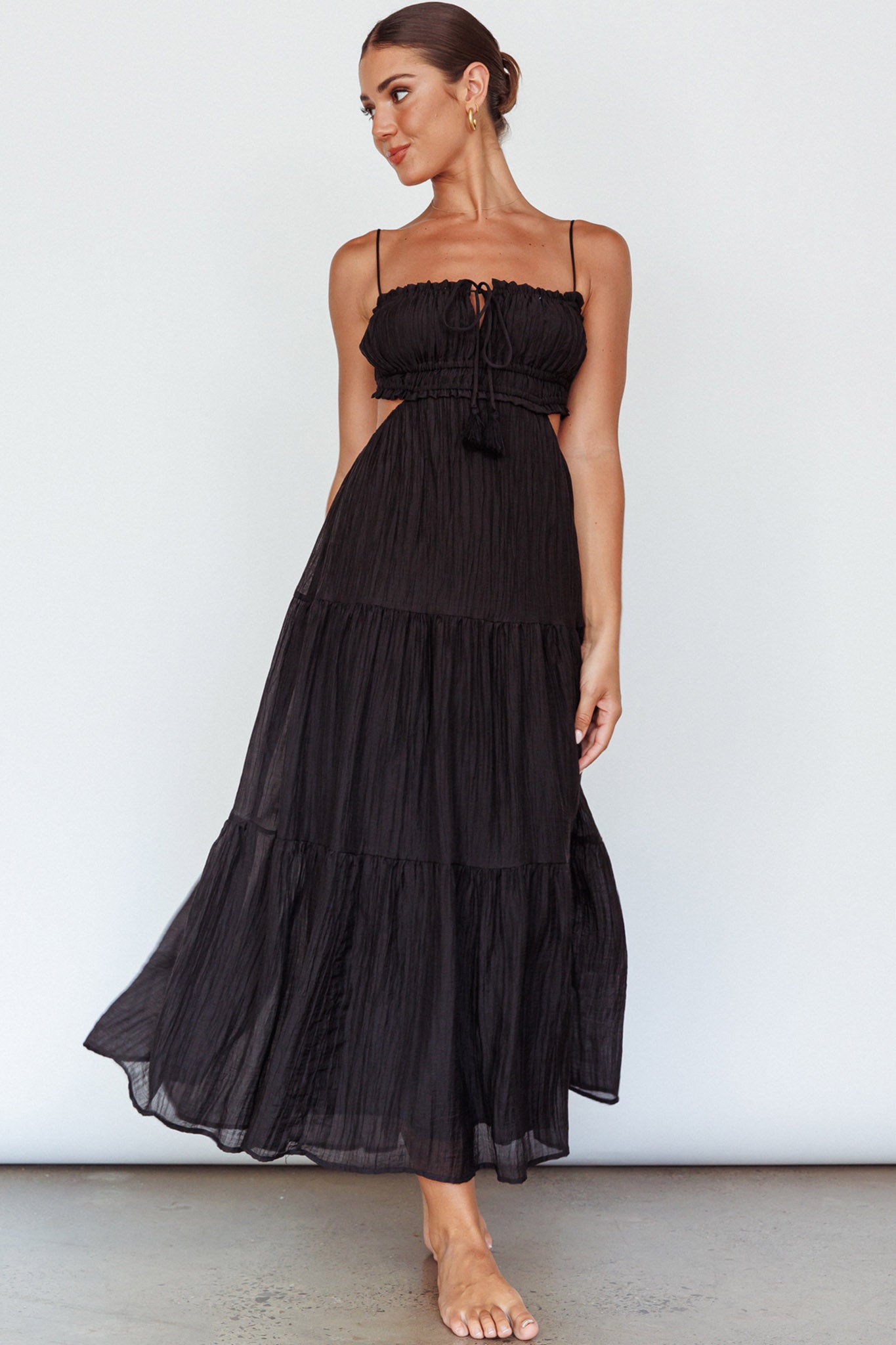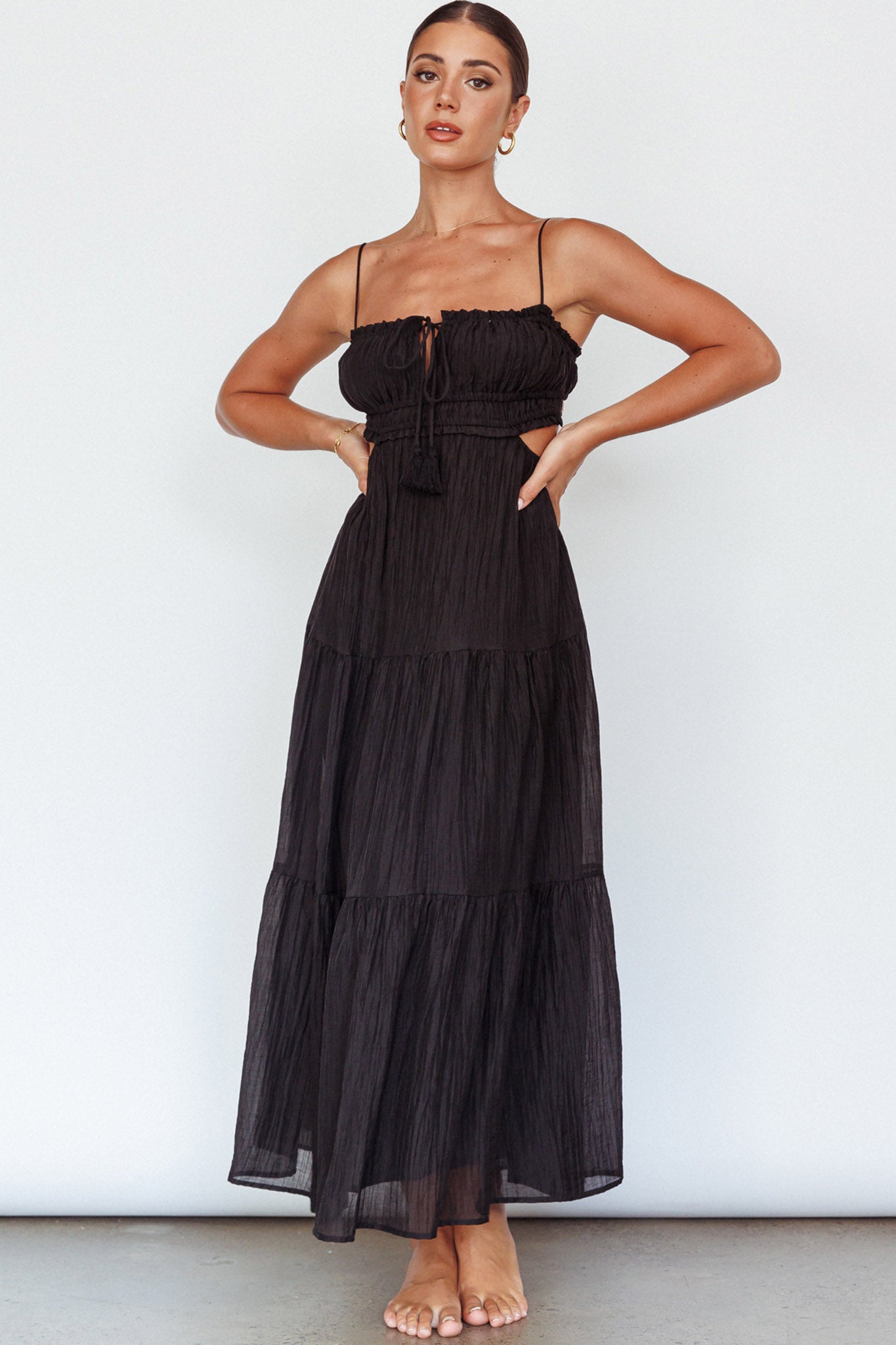 Eyona Cut-Out Waist Tie Maxi Dress Black