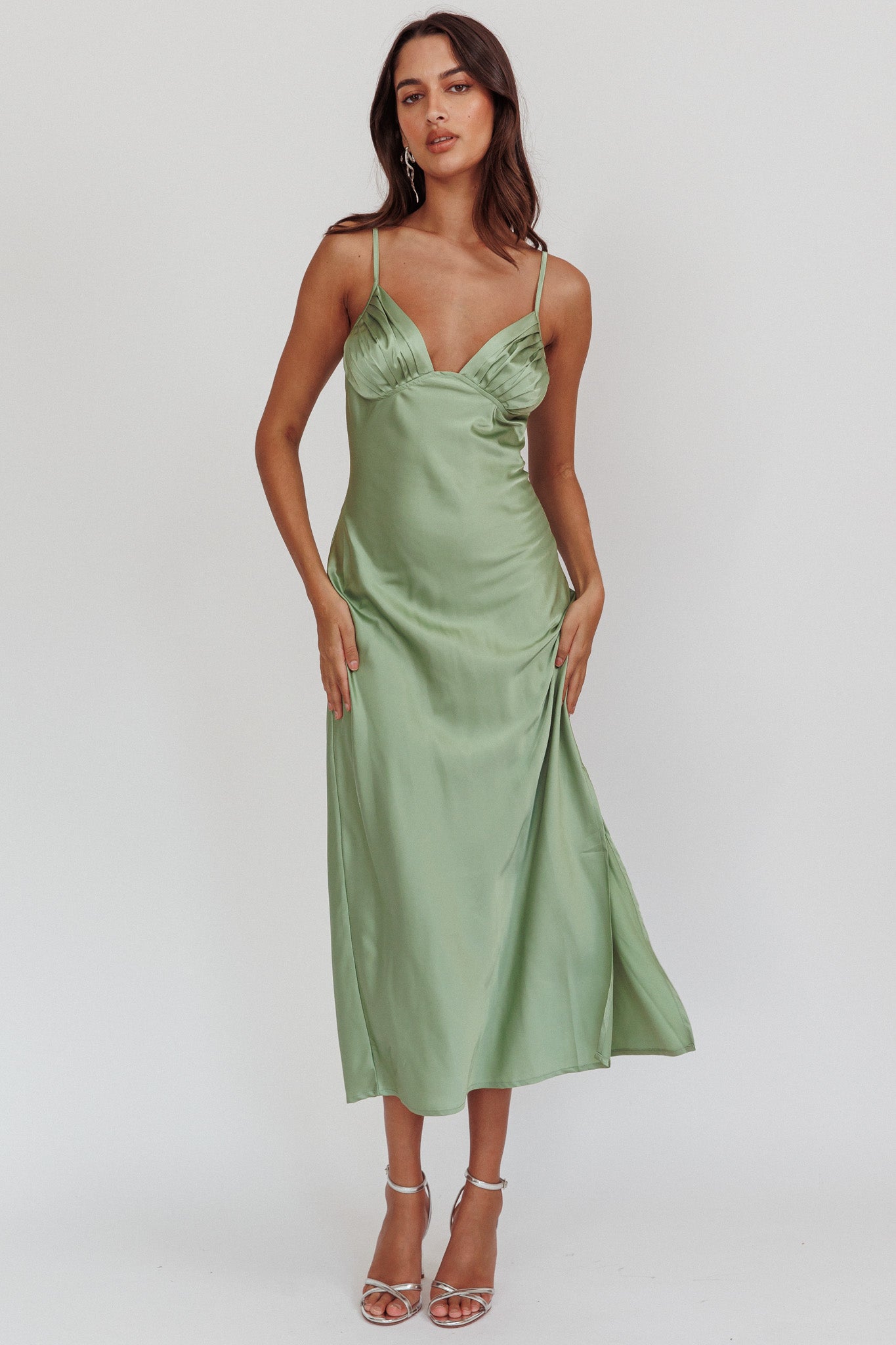 Felicity Pleat Bust Split Midi Dress Sage