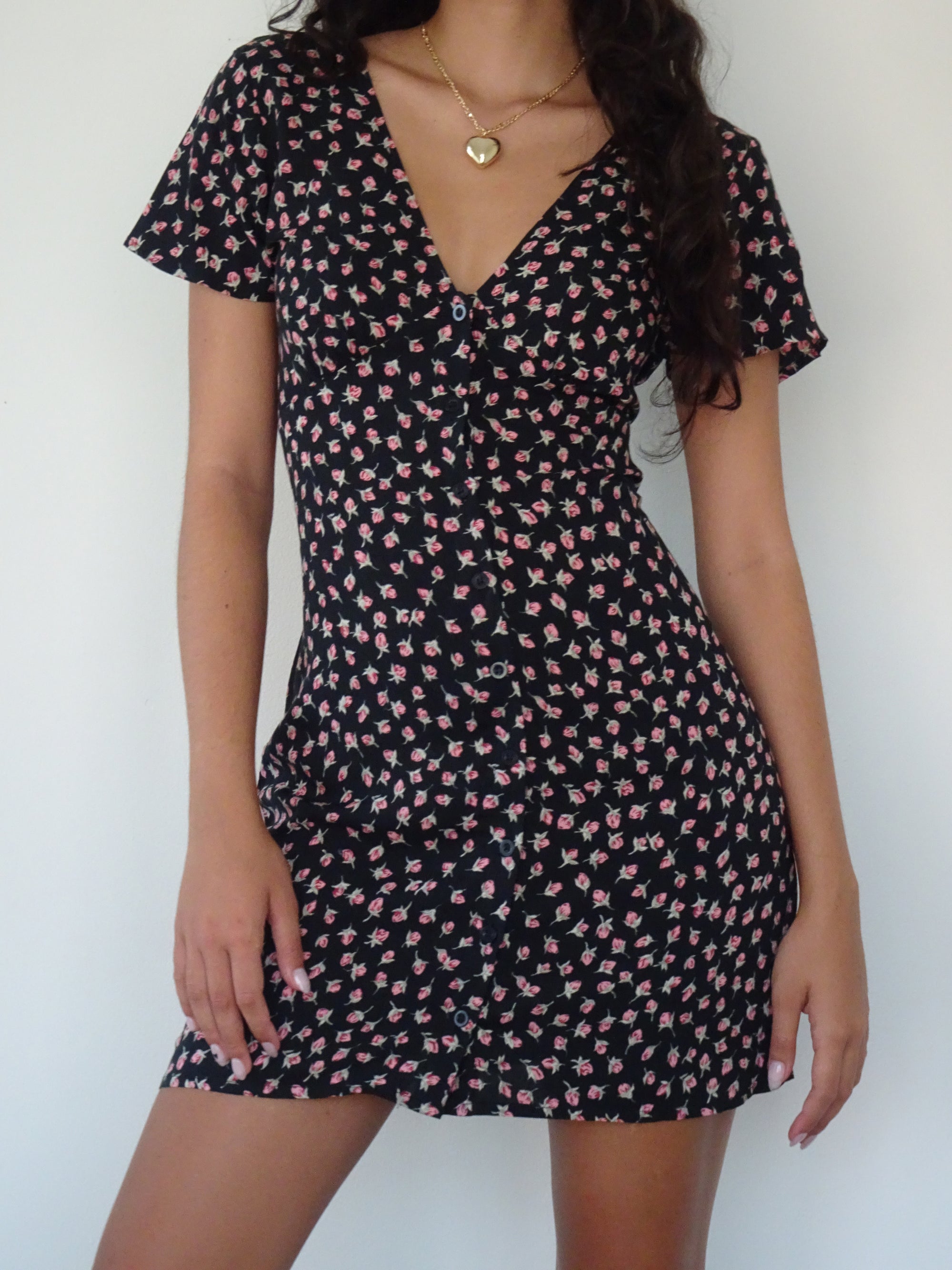 Float through your weekend in the super sweet Field trip mini dress. It features a button-up closure in the front and a dreamy floral print and is perfect for Saturday coffee dates with your besties teamed with slides and a saddle bag for a cute-casual look.
