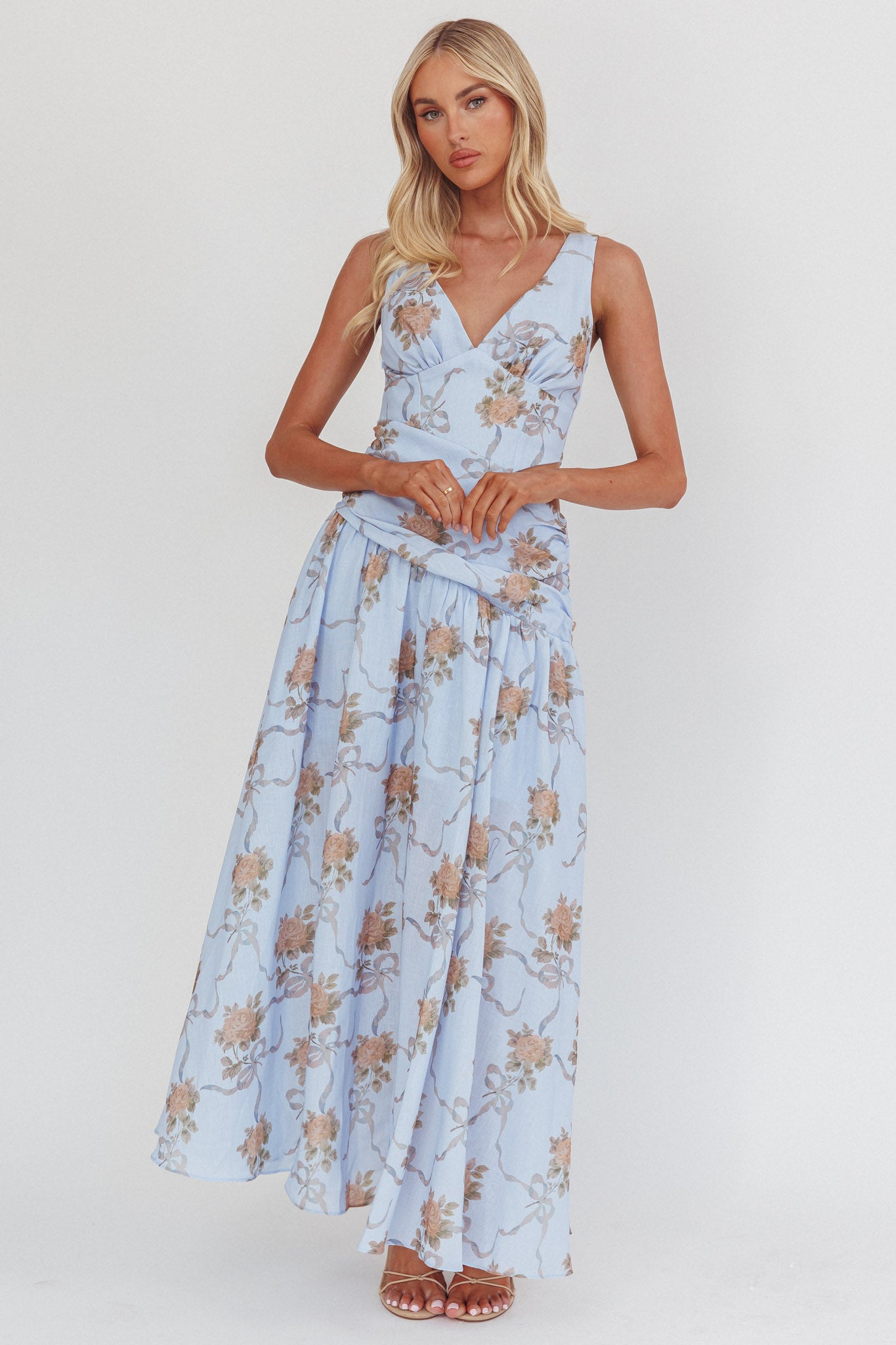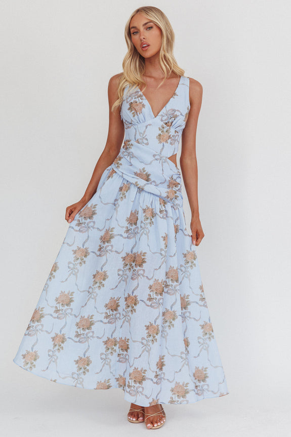 First Dates Waist Cut-Out Maxi Dress Floral Blue