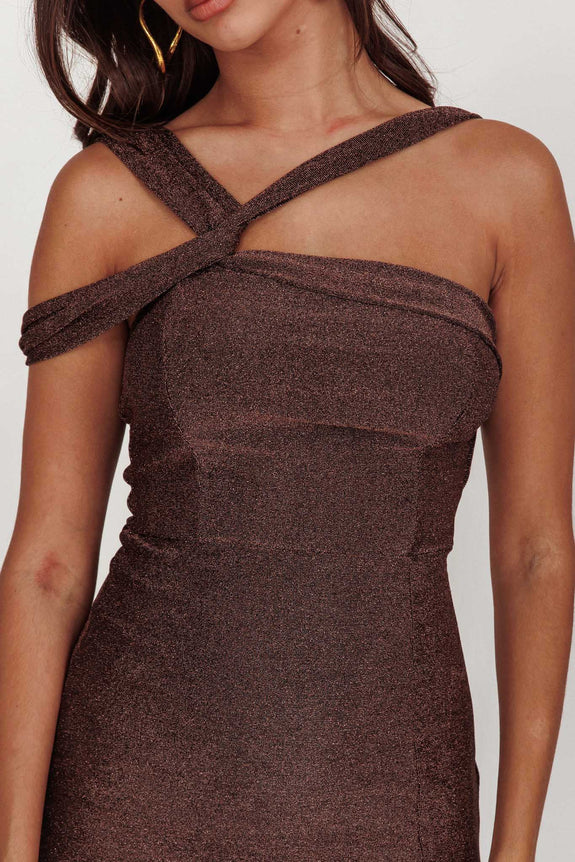 First Impressions One Shoulder Midi Dress Chocolate