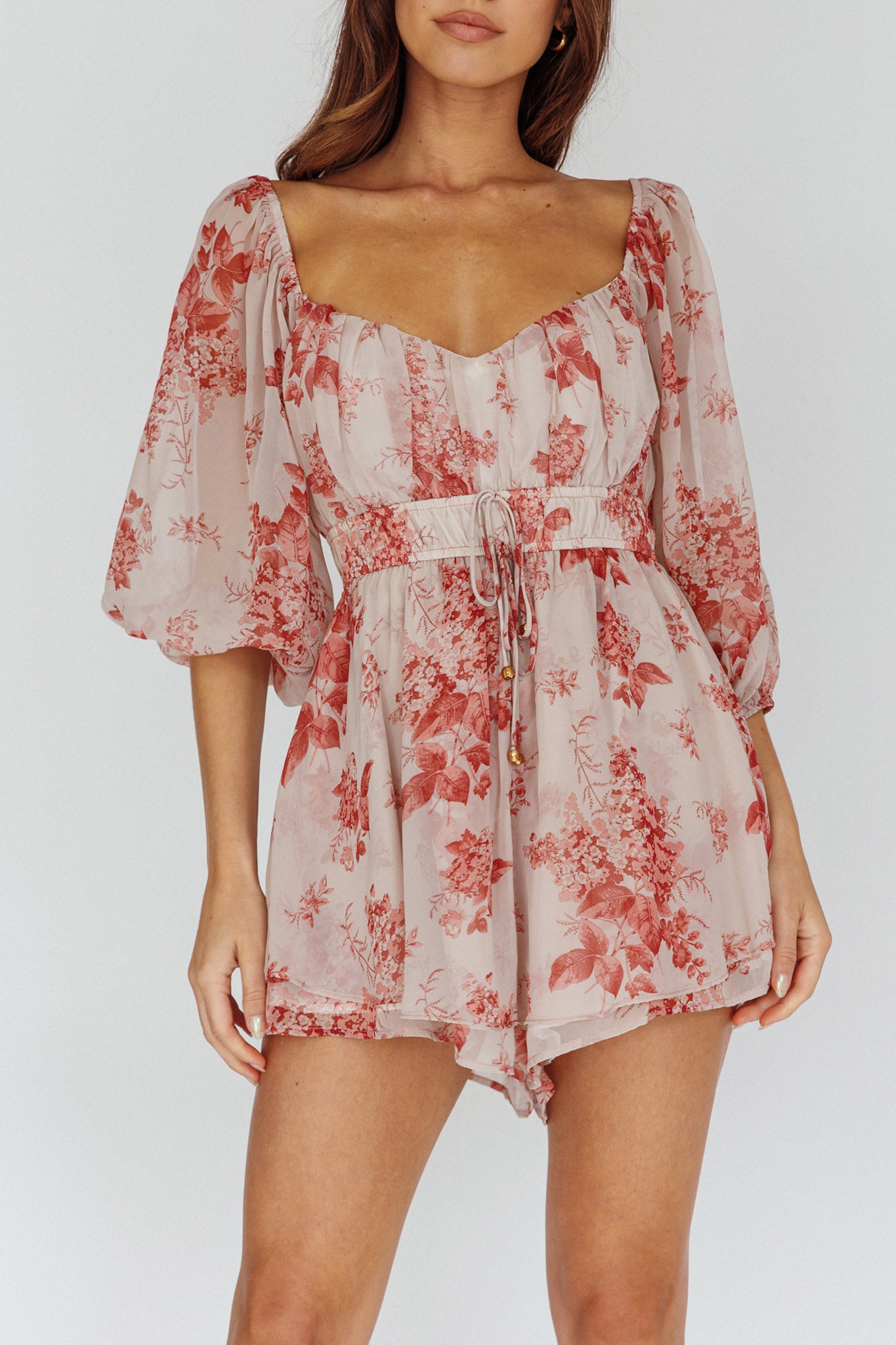 First Light Puff Sleeve Elasticated Waist Romper Floral Print Rose
