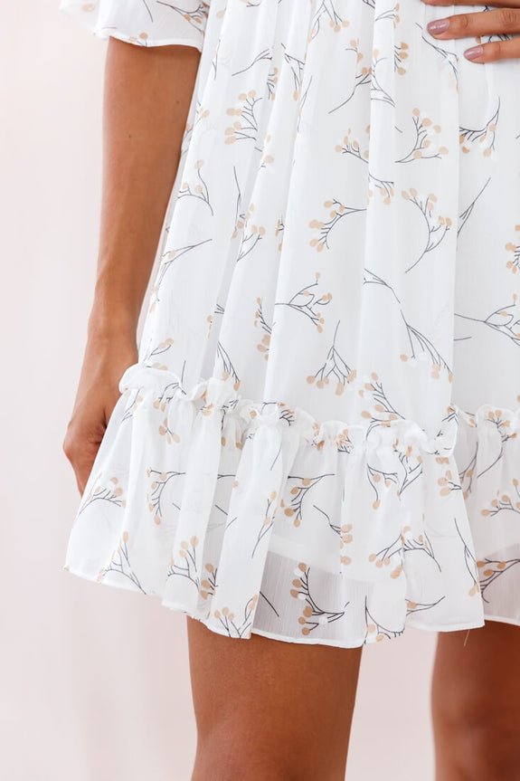 Float through your day in this breezy, feminine babydoll style dress. Perfect for a movie date with bae or lunch with your best gals, this dress features a partial lining, super cute ruffle detailing under the bust, cut-out back, fluttery angel sleeves and pretty floral chiffon fabric to complete the look. Pair it with sneakers for a casual look or dress it up with knee high boots and a jacket for a look that we are loving.