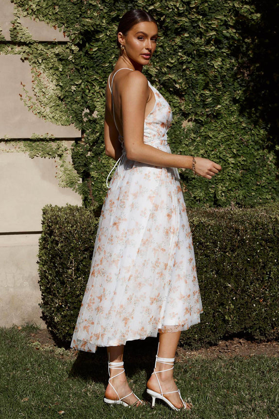 You'll be floating on Cloud 9 in our stunning Floating By midi dress. We are loving the dreamy floral print and lace-up back, giving us all the princess vibes. Wear it to prom or a special birthday occasion teamed with clear heels and a clutch.
