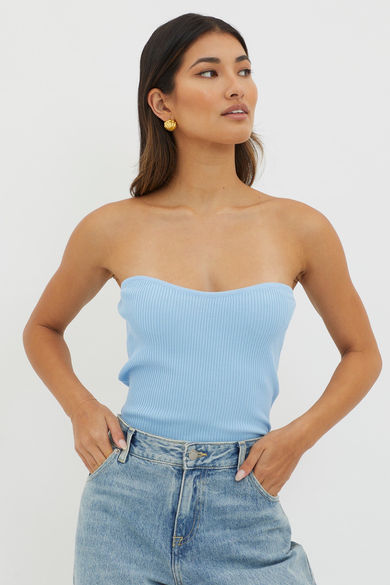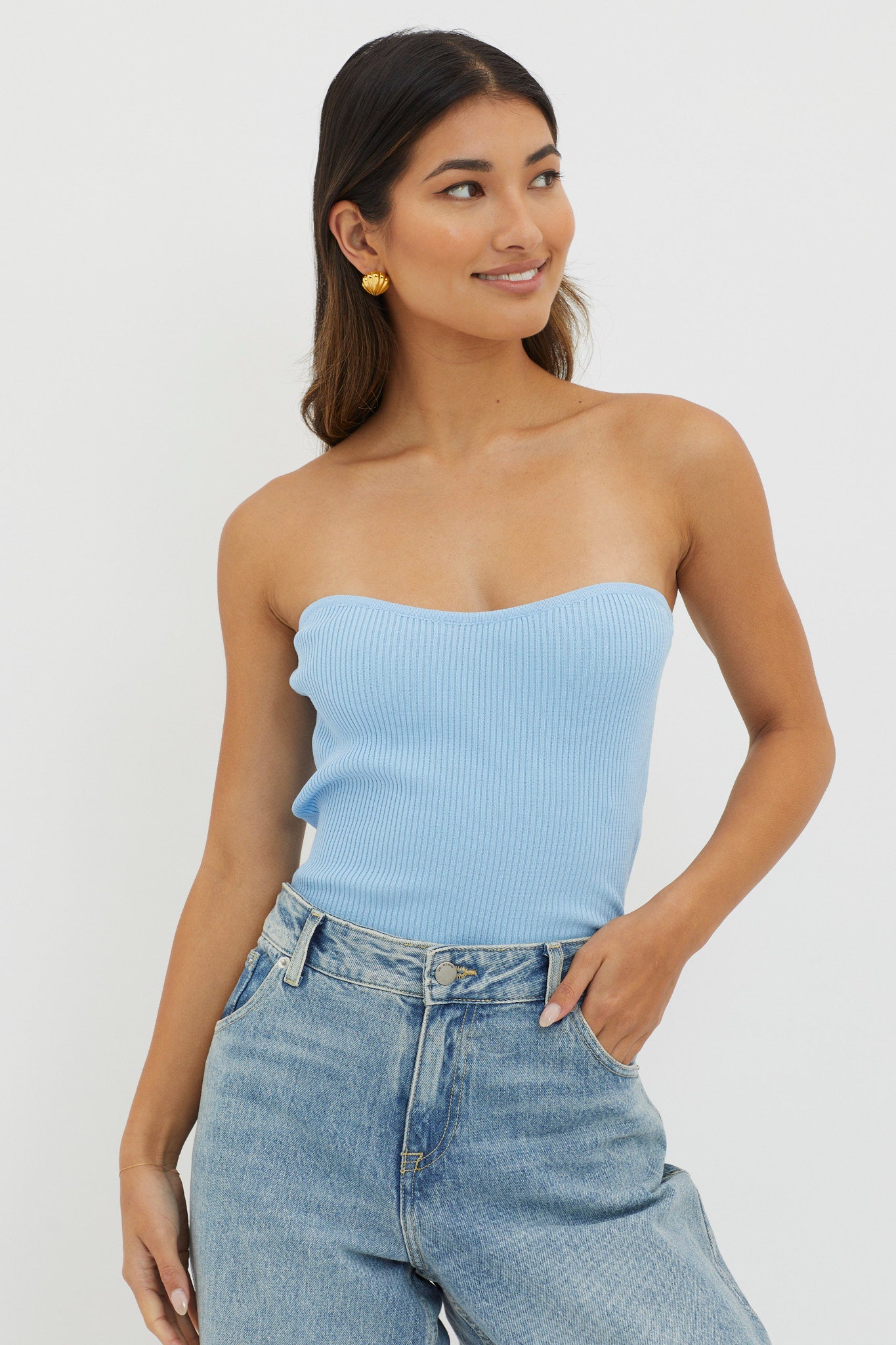 Turn heads in our super cute Flora top. It features a subtle sweetheart neckline and strapless style and we are loving its luxe, ribbed knit fabric. Perfect for weekend brunch dates teamed with wide-leg jeans and boots for a chic look.