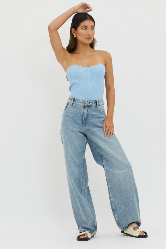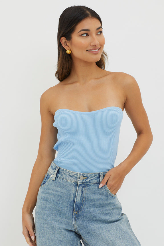 Flora Strapless Knit Top Blue