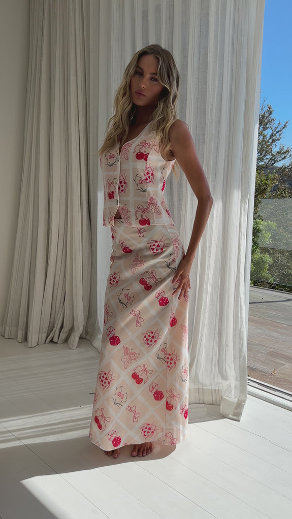 Flowering Romantic Print Sleeveless Vest Beige