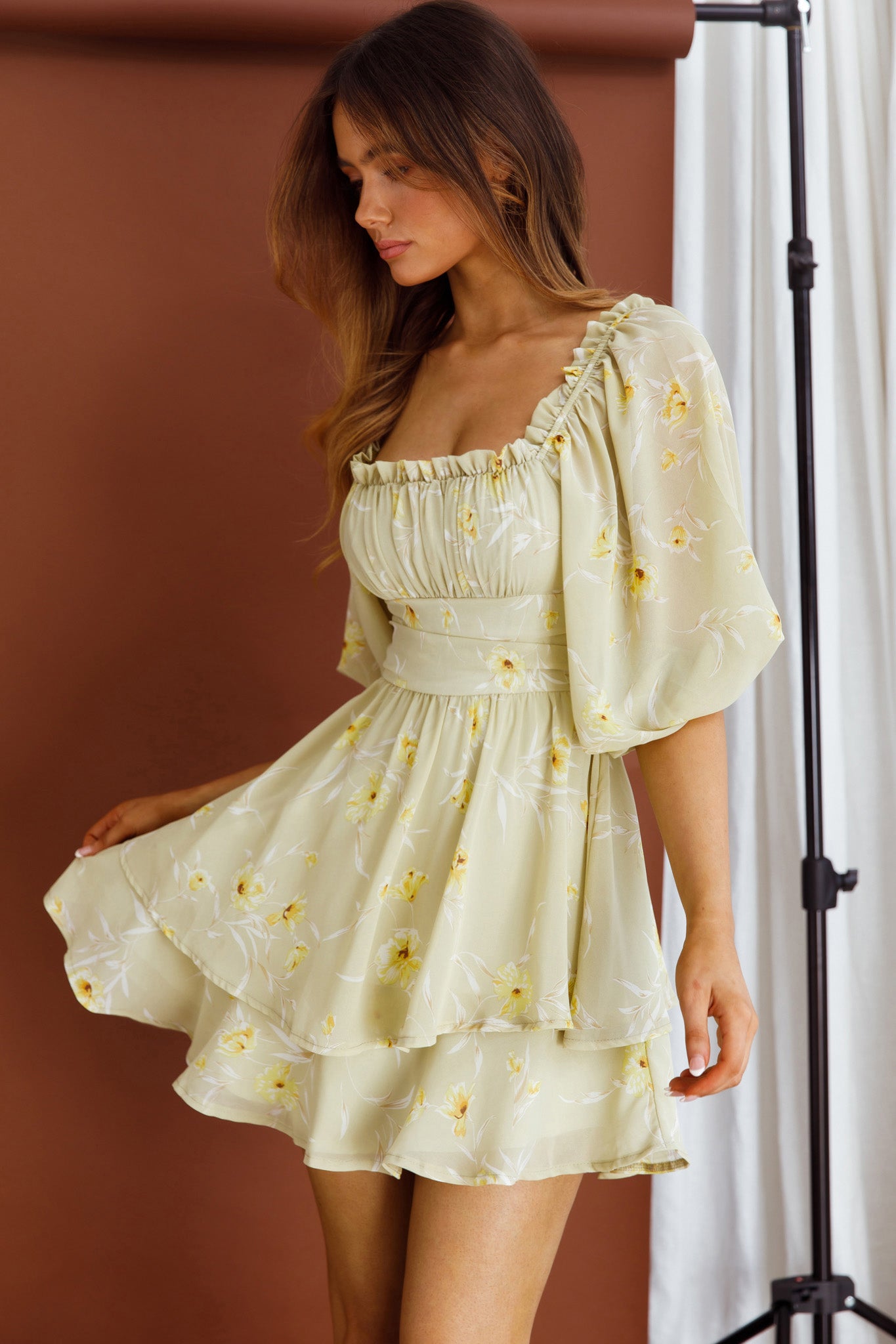 • Lime floral mini dress