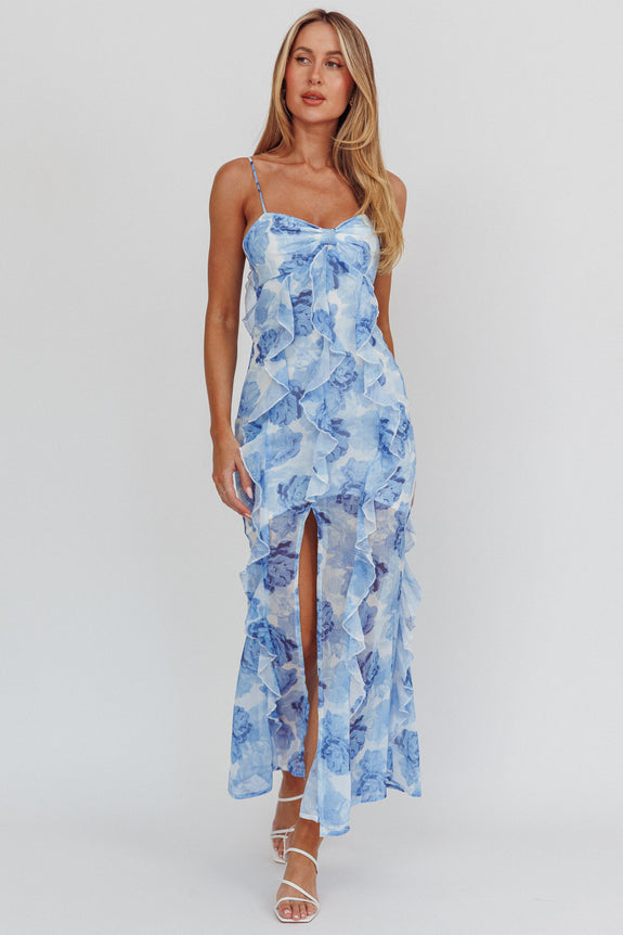 Frannie Vertical Ruffle Maxi Dress Floral Blue