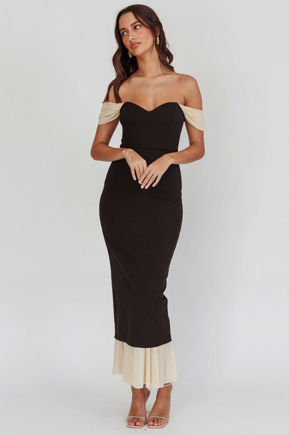Freesia Off Shoulder Bodycon Maxi Dress Black