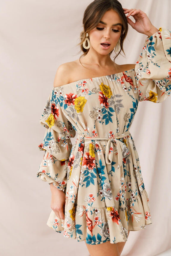 Someone call the fire department cause things are heating up! Our Frida dress is perfect for a night out salsa dancing or a picnic date with bae. Featuring off-shoulder balloon sleeves and a belted-tie waist, this on-trend floral dress is sure to draw some attention. Team with canvas wedges or sneakers for a casual look.