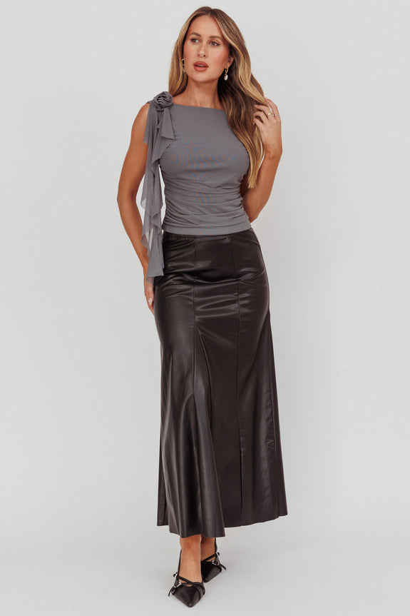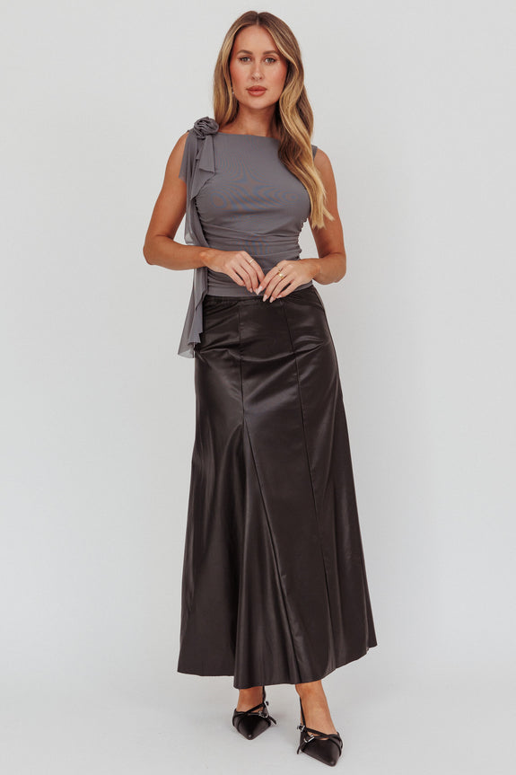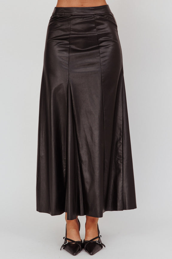 Make an entrance in our gorgeous Galaxia maxi skirt. It features an A-line design and faux leather material. Perfect for a girls' night out teamed with black, strappy heels and a blouse for a look that will turn heads.