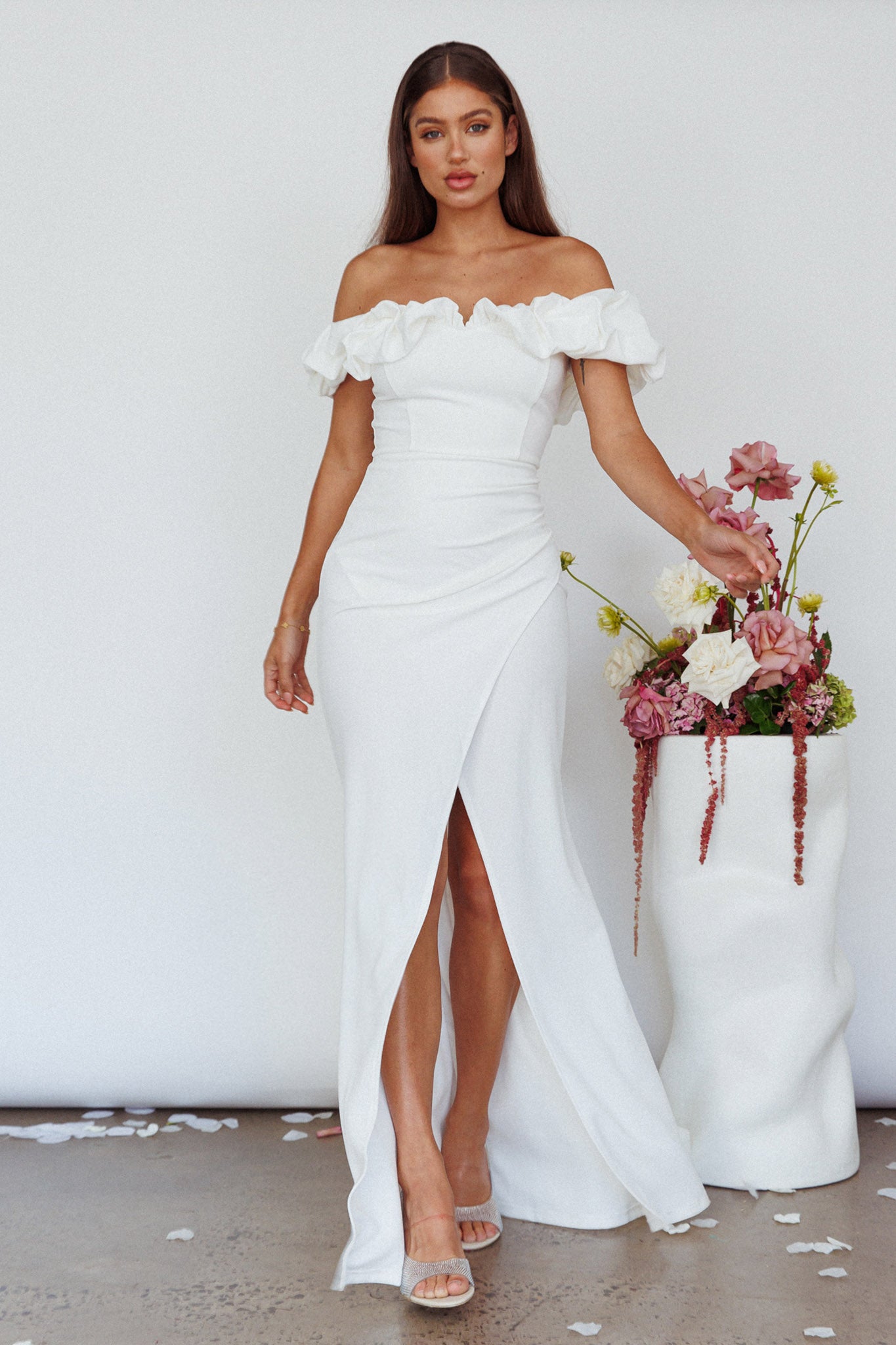 You'll feel like you just stepped off the red carpet in our gorgeous Gardena maxi dress. We are in love with its off-shoulder style and figure-hugging cut! Perfect for prom or a special occasion. Team it with perspex heels and a clutch for a head-turning look.