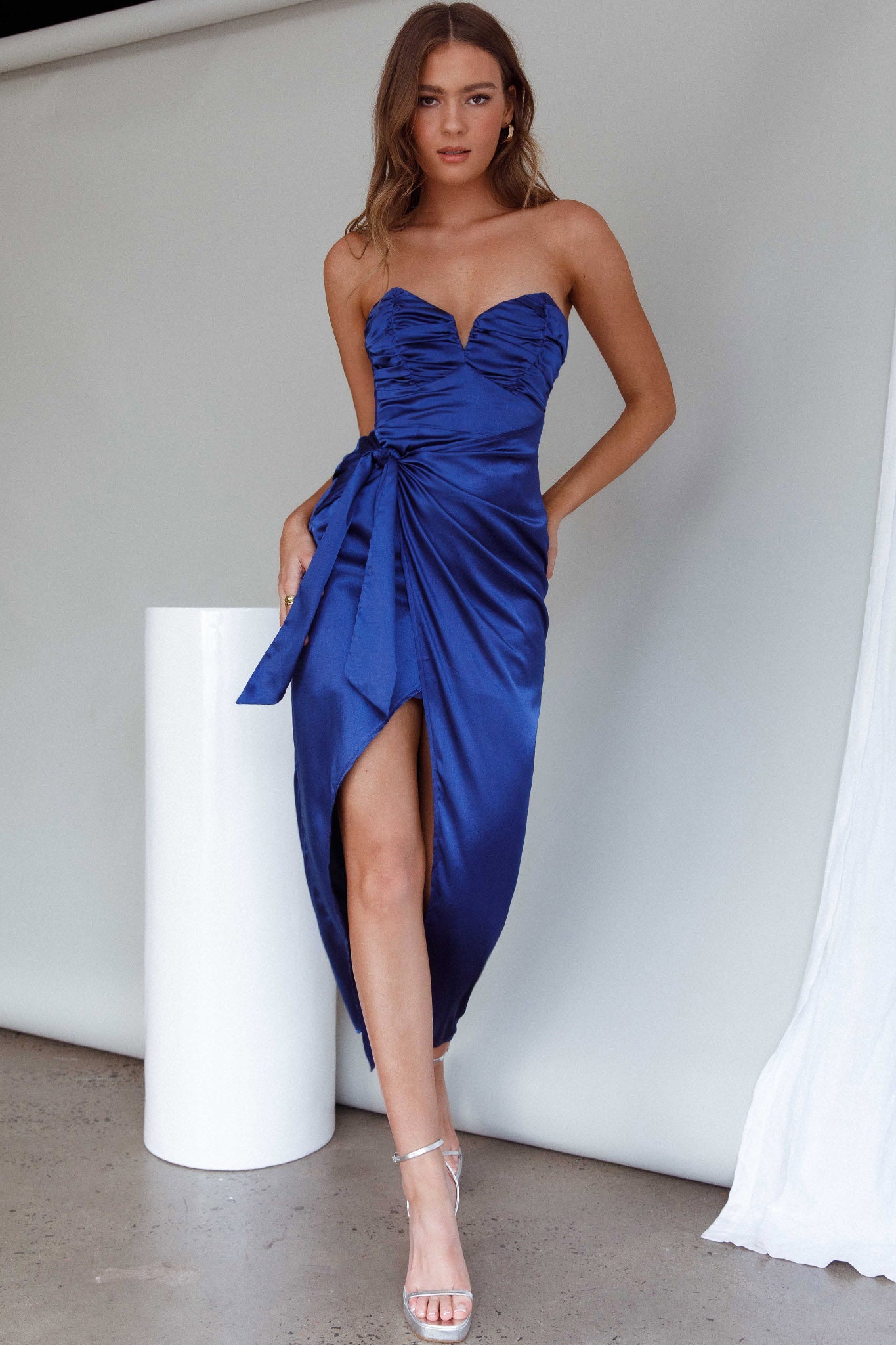 You will steal the limelight in our gorgeous Gianna dress. We are in love with its elegant silhouette and chic tie at the waist. Perfect for a wedding or a special occasion soiree. Team it with diamante mules and a small clutch for an unforgettable look.