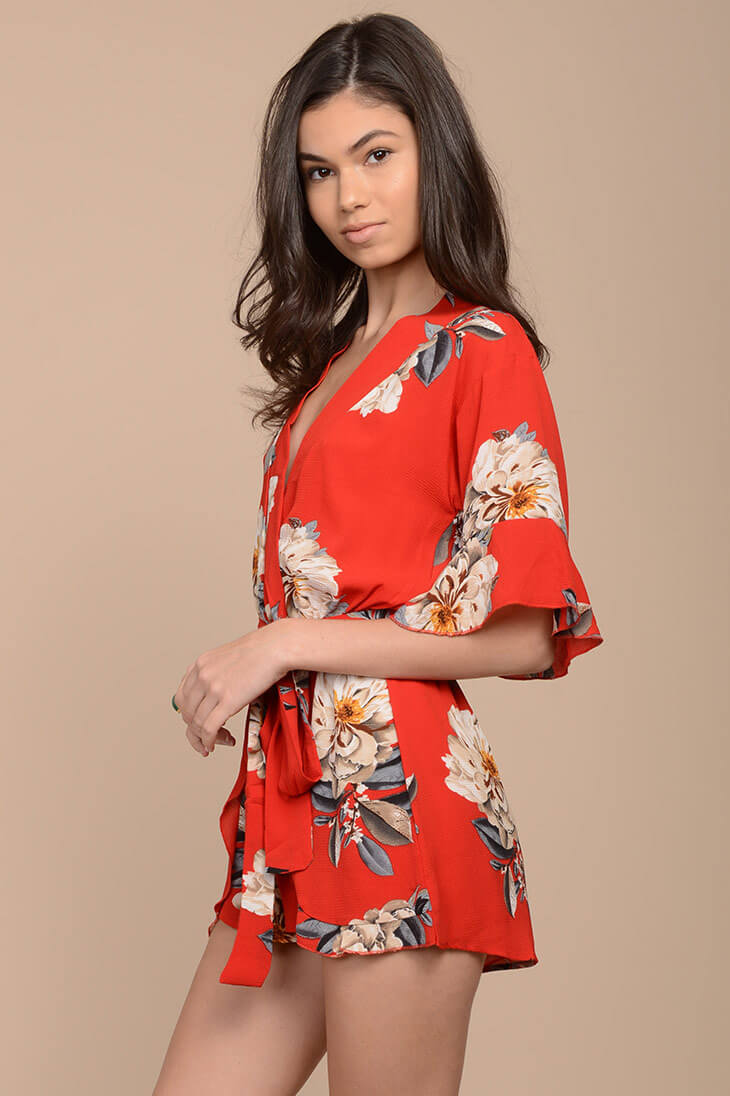 What could be better than a boho kimono? The Jade Floral Boho Romper gives a wrap illusion and delicately colored floral design. Pair with slip on sandals to stay casual and cool.
