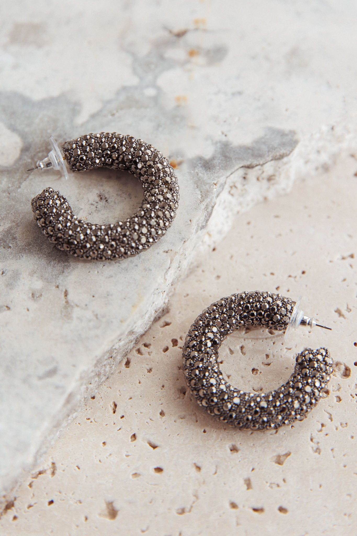 Gigi Semi Hoop Earrings Black Diamante