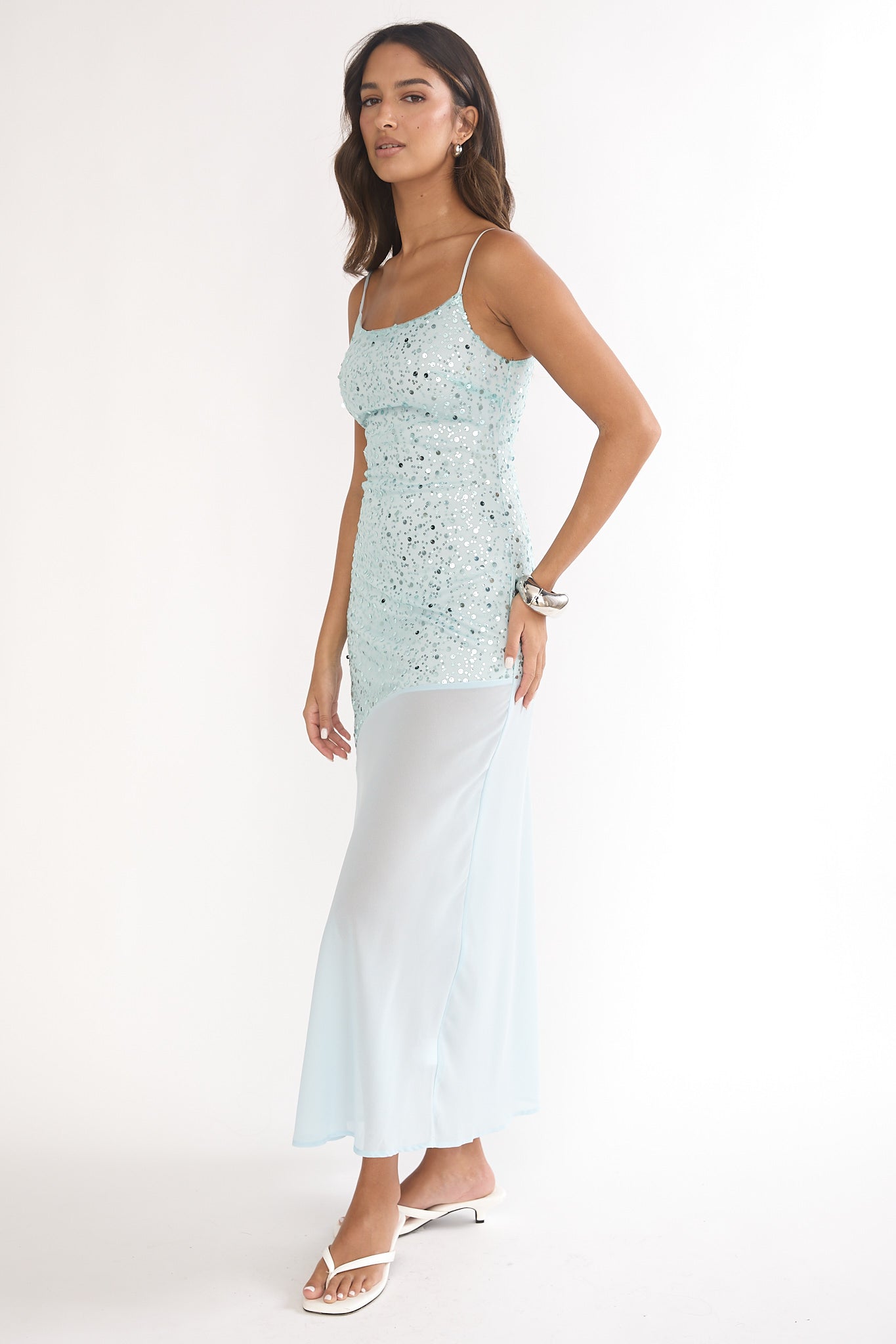 Ooze elegance with our gorgeous Gilded Dream maxi dress! Featuring a contrasting chiffon hem and sequin detail, you will be sure to light up the room when you walk in. Pair it with satin heels and a chic clutch for bridal events or a special celebration.