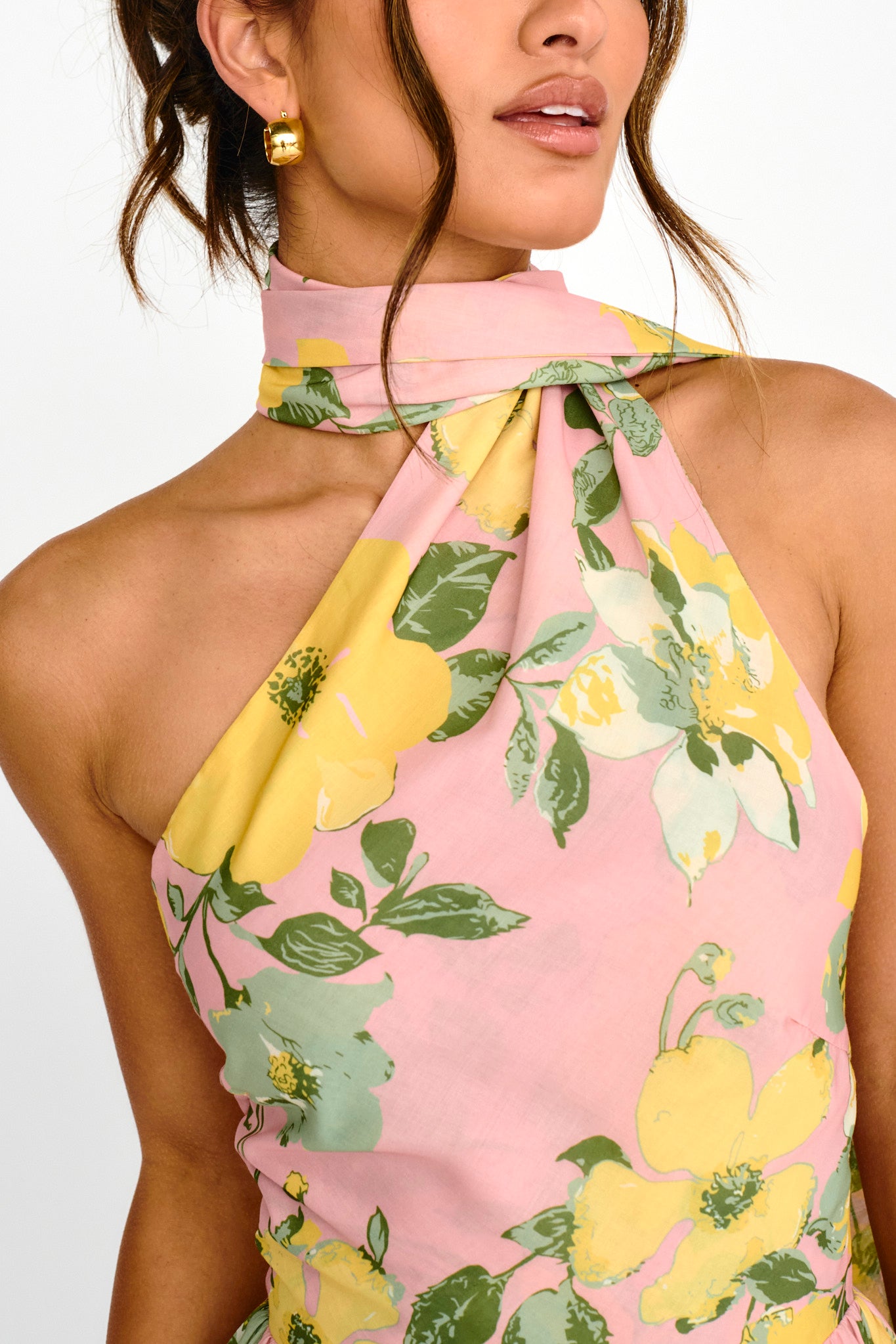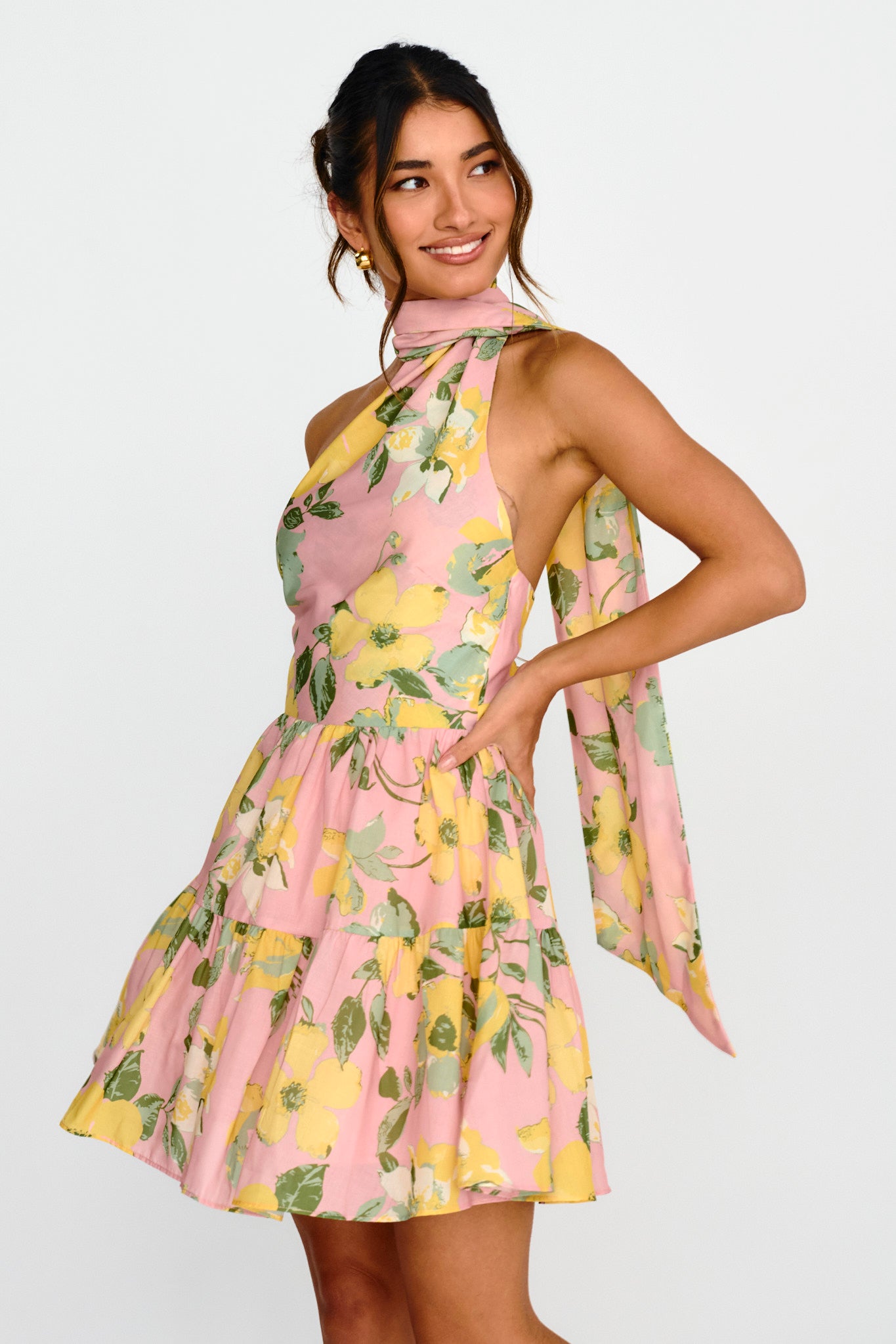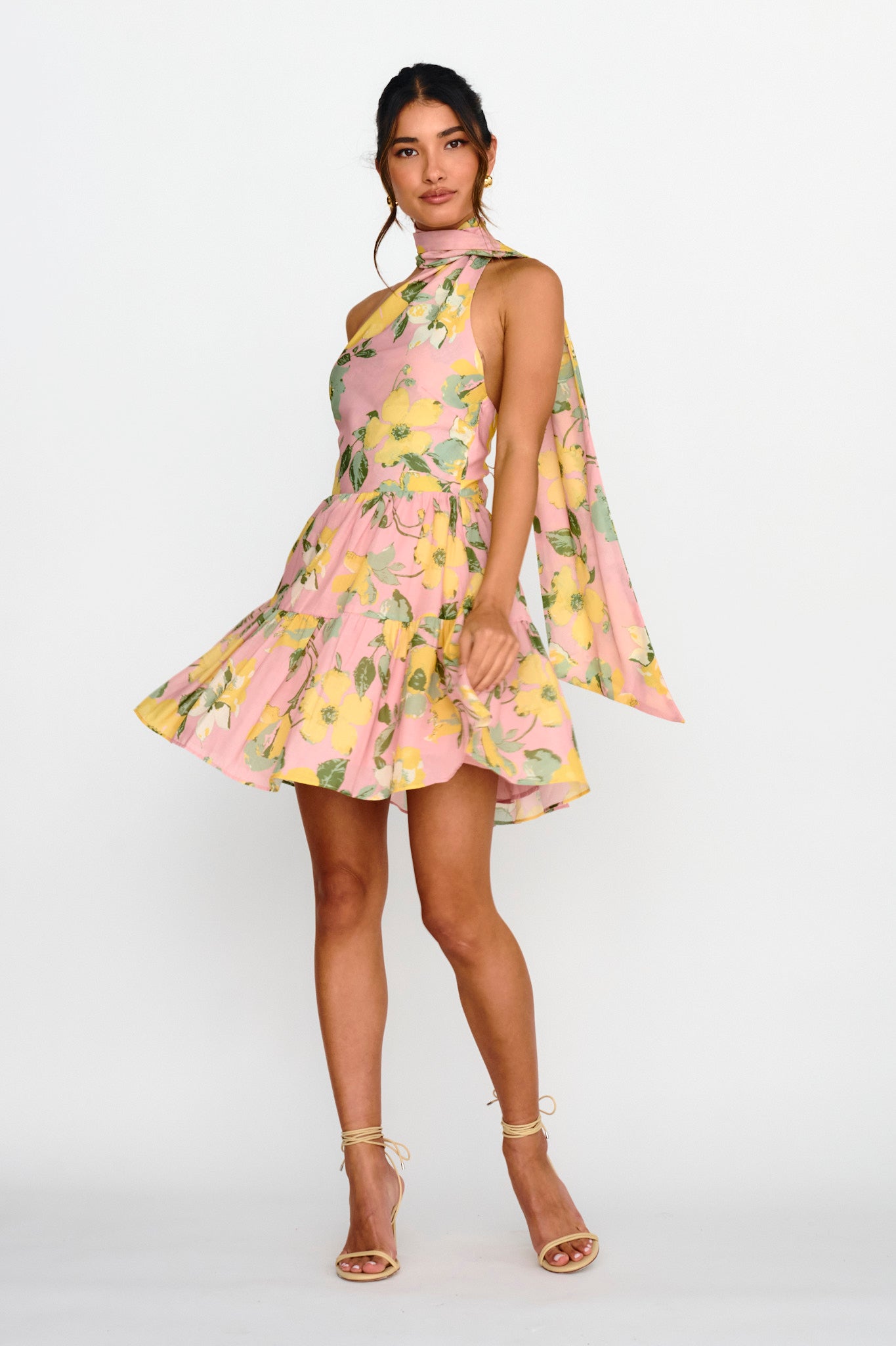 You'll feel like packing your bags and escaping for a Euro Summer in our gorgeous Gimme Love mini dress. Featuring a feminine floral print and halter tie, it's perfect for a sunset dinner with your love or special occasion. Team it with strappy, tie-up heels and a tote for an unforgettable look.