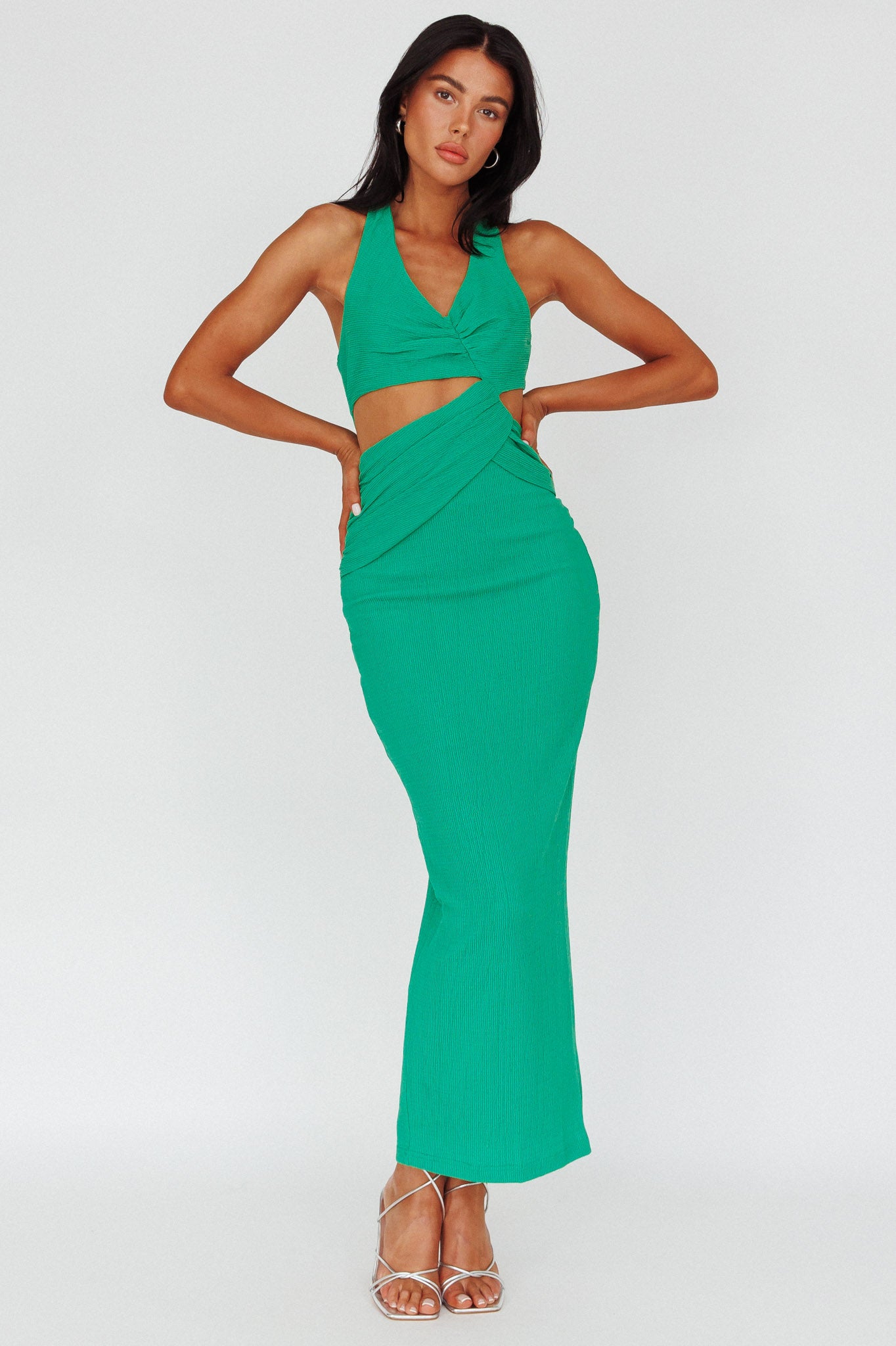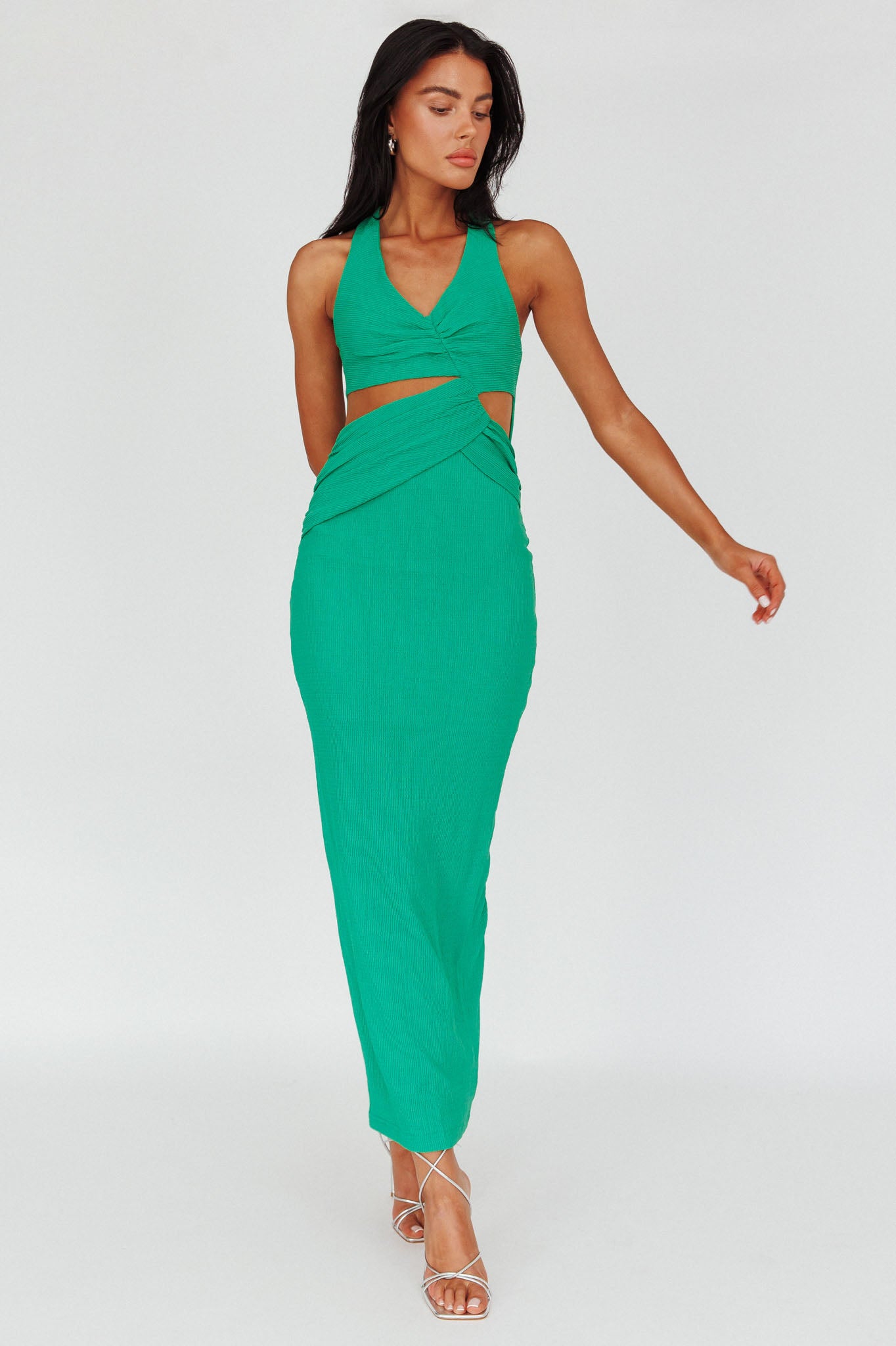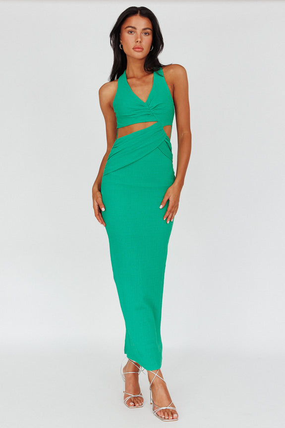 Giulia Cut-out Ribbed Halterneck Midi Dress Green