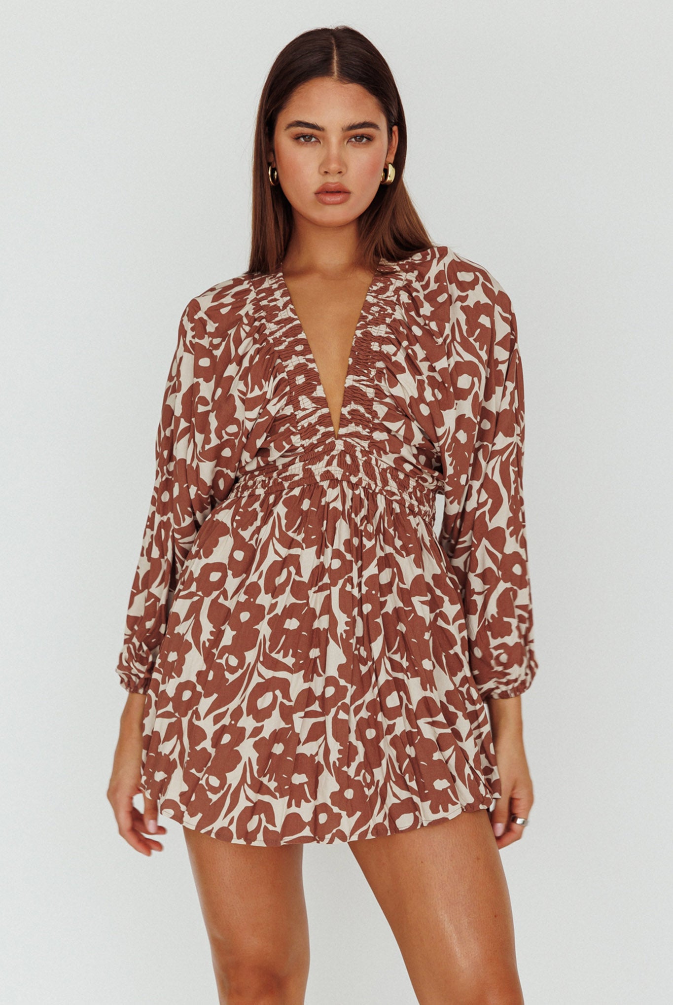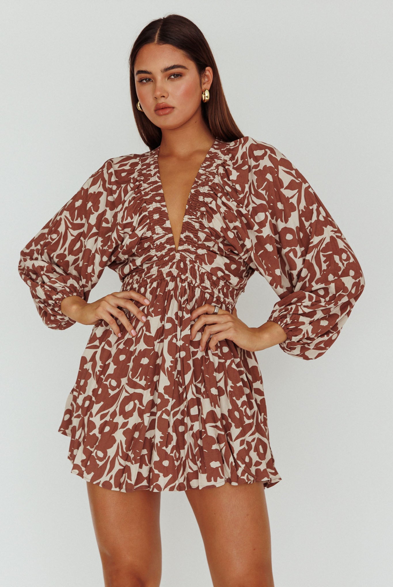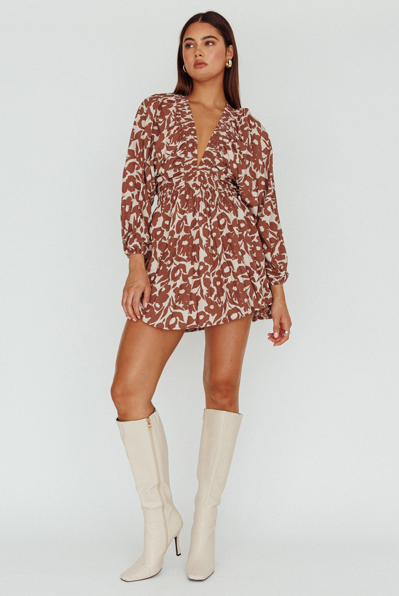 Breeze through your Saturday in our pretty Going Your Way mini dress. Featuring long, balloon sleeves and an elasticated waist. It's perfect for lunch dates with your girls teamed with boots and a tote for a cute look.