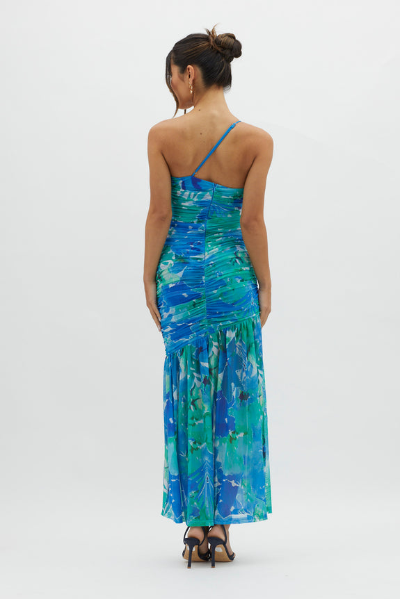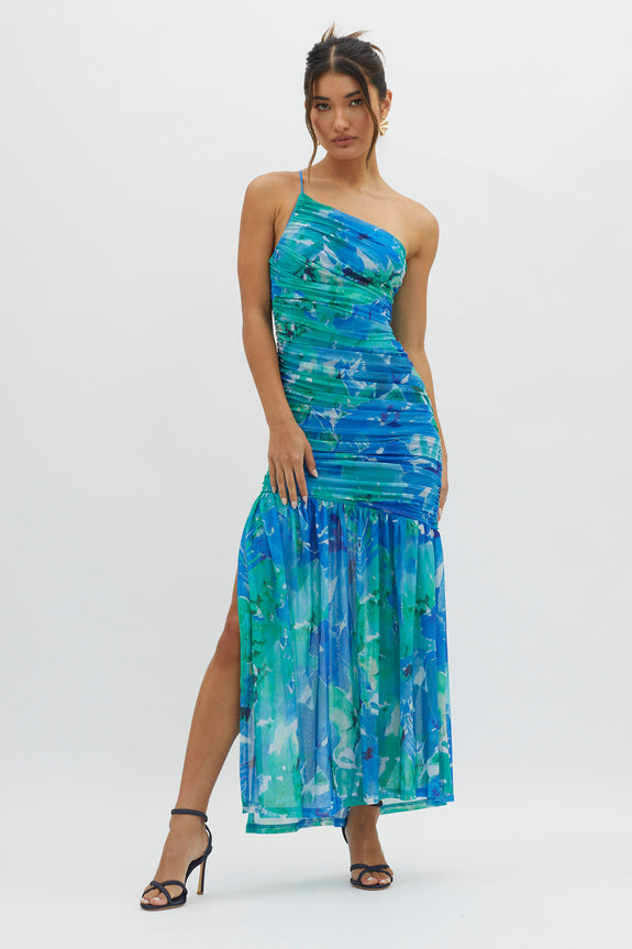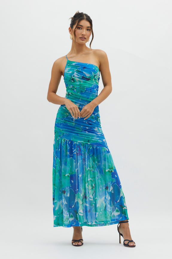 Golden Sun One-Shoulder Ruched Maxi Dress Green