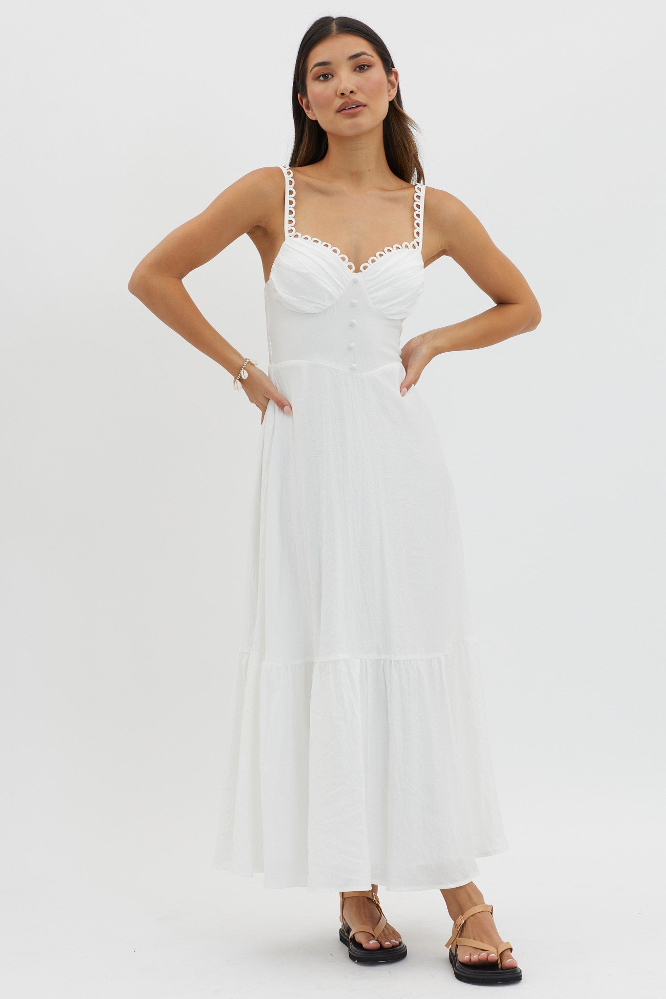 - Button decoration in bodice