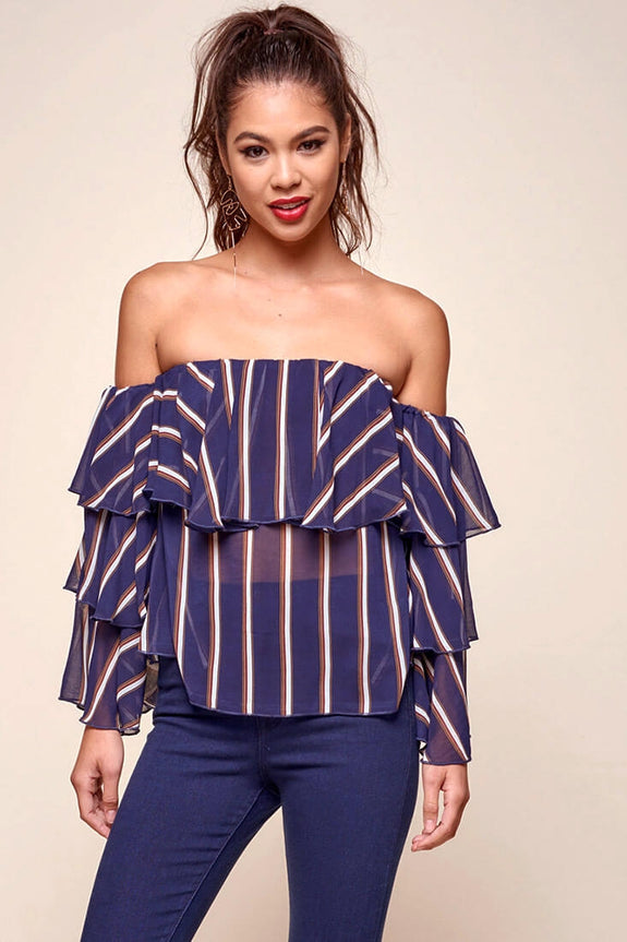 A top that you can dress both up and down, the Goldwyn Tiered Tube Top is one that you'll want to wear with jeans or a fitted mini skirt. Gorgeous bell sleeves elevate this look to new heights.
