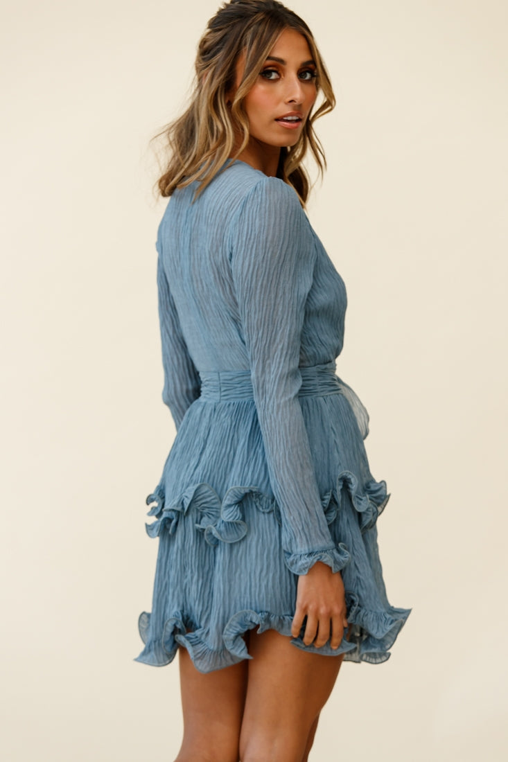 Make an entrance in our flirty and ultra feminine Greta dress. Featuring a V-neckline, long sleeves, flattering wrap front and tiered ruffles around the skirt. We love the soft chiffon fabric with unique crinkled texture. Team it with some strappy heels and gold hoops for a look we are loving.