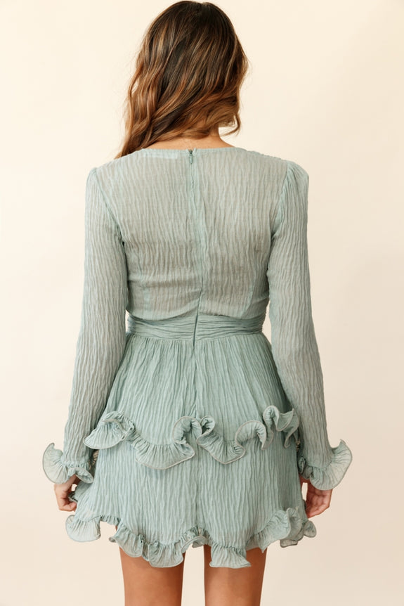 Make an entrance in our flirty and ultra feminine Greta dress. Featuring a V-neckline, long sleeves, flattering wrap front and tiered ruffles around the skirt. We love the soft chiffon fabric with unique crinkled texture. Team it with some strappy heels and gold hoops for a look we are loving.